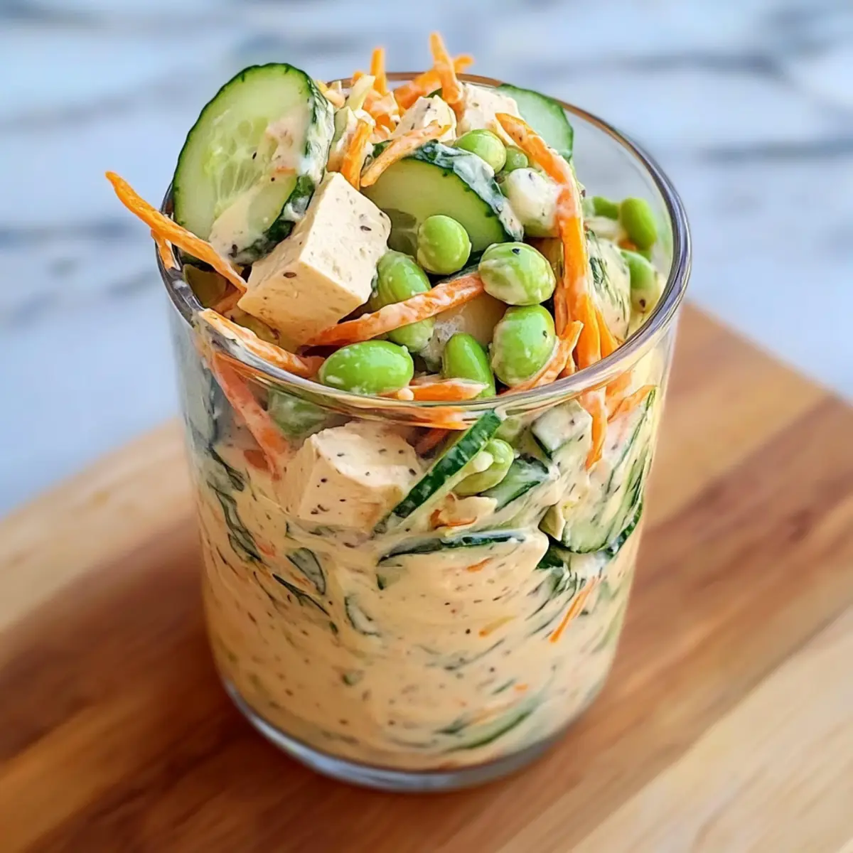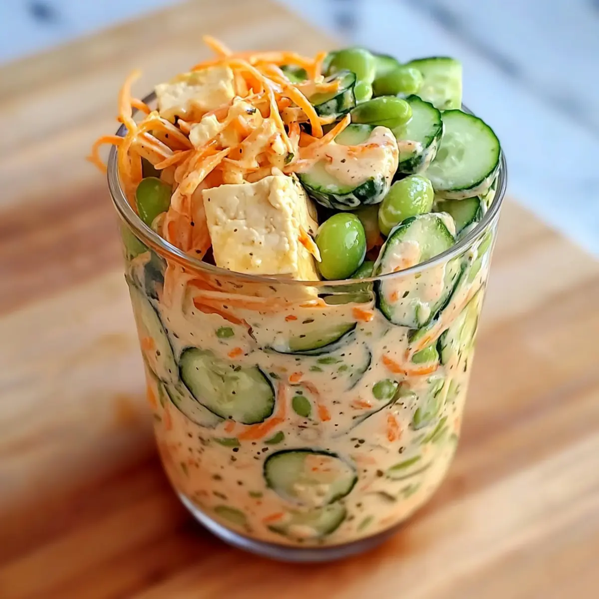 These Creamy Asian Cucumber Salad Bowls are perfect for meal prep convenience! You can prepare the salad components and layer them in a jar up to 24 hours in advance, keeping everything fresh and crunchy. Simply slice the cucumbers and julienne the carrots, then layer them with edamame and tofu. For best quality, store the dressing separately and add it right before serving; this prevents the veggies from becoming soggy. When you’re ready to enjoy, just drizzle the dressing over the salad and shake or mix thoroughly. With this make-ahead option, your busy weeknights will be a breeze, offering you a delicious, vibrant meal in minutes!