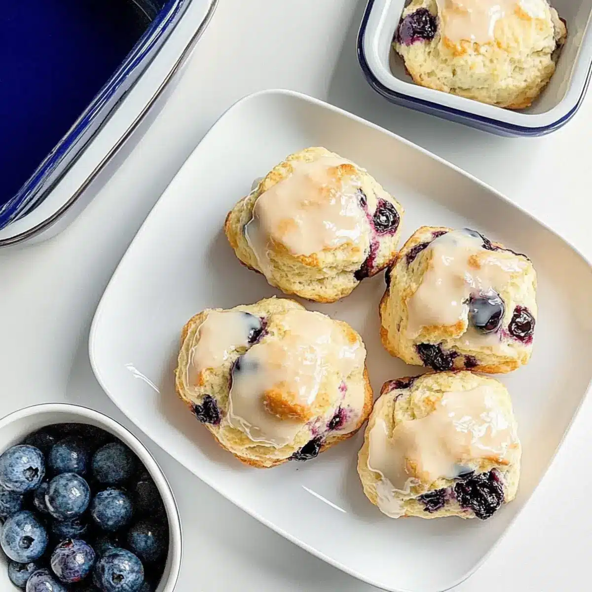 Once the Lemon Blueberry Biscuits are out of the oven, let them cool slightly before drizzling the glaze over them. The warmth of the biscuits will help the glaze melt slightly, creating an irresistible, glossy finish that adds both flavor and visual appeal.