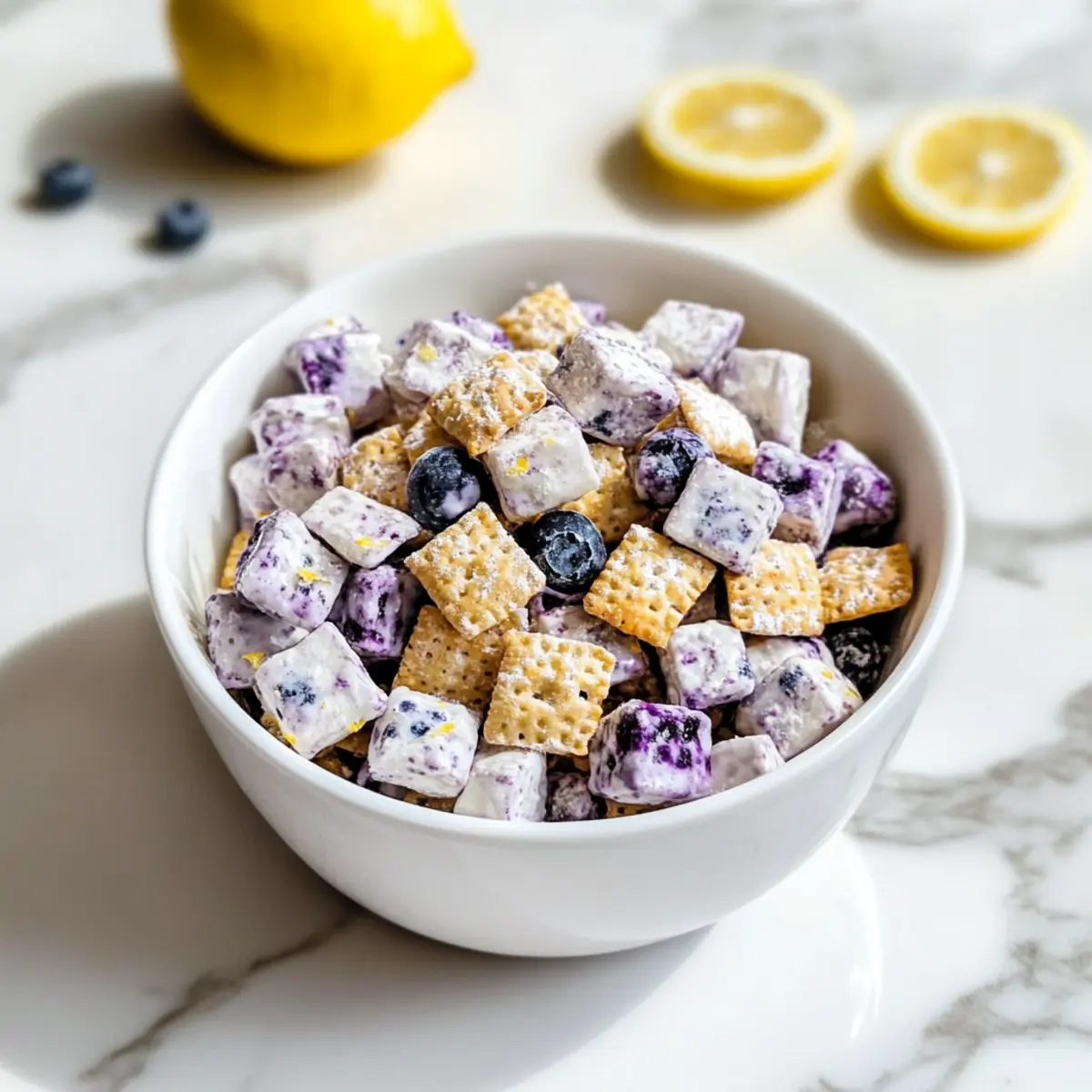 Blueberry Lemon Cheesecake Puppy Chow for Sweet Summer Snacking