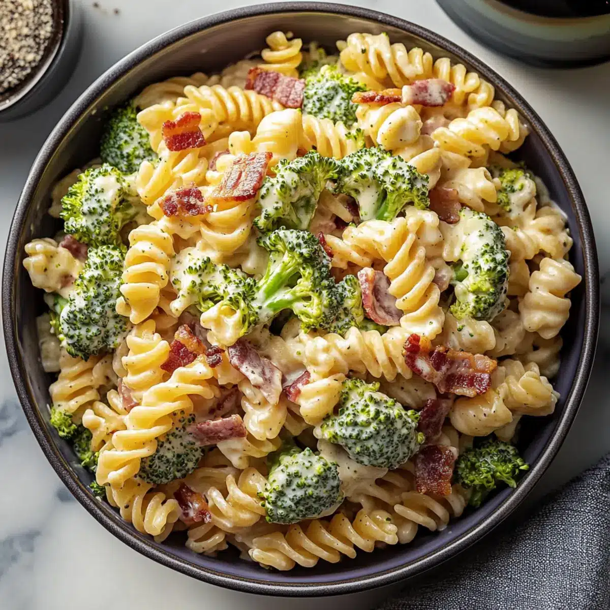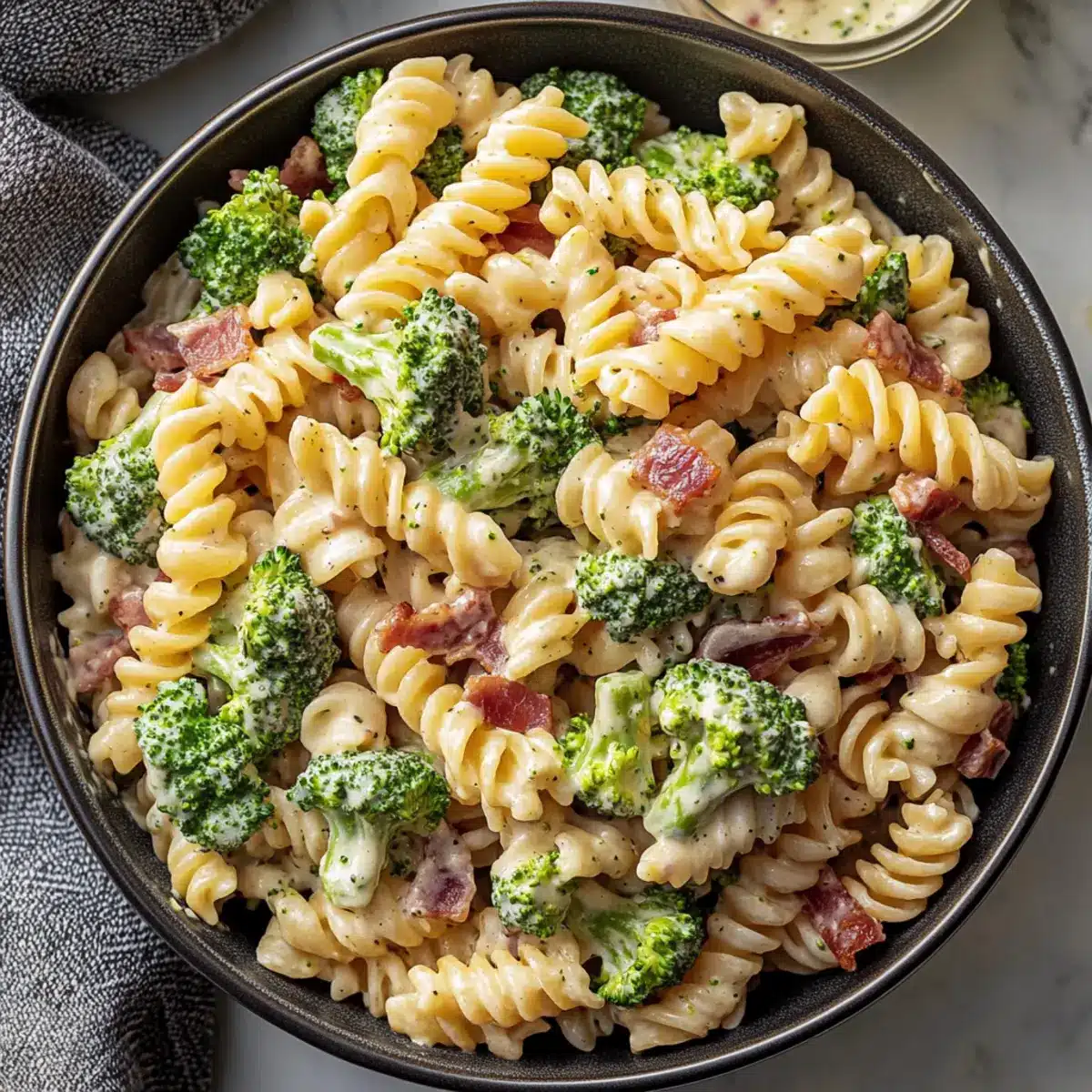 These Broccoli Pasta Salad preparations are perfect for busy weeknights and gatherings! You can chop the broccoli, red onion, and any other vegetables you plan to use up to 3 days in advance and store them in airtight containers in the fridge. Additionally, you can prepare the creamy dressing ahead and keep it refrigerated for the same time frame. Just remember to keep the bacon separate until you’re ready to serve; this will maintain its crispy texture. When you’re ready to enjoy, simply cook the pasta fresh, combine it with the prepped ingredients and dressing, and let it chill for at least 3 hours. This way, you’ll have a vibrant and delicious Broccoli Pasta Salad ready to impress your family and friends!