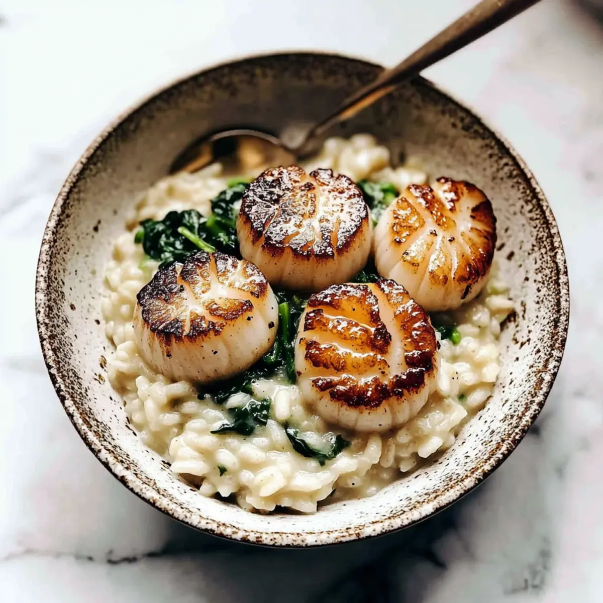Savory Brown Butter Scallops Over Creamy Parmesan Risotto