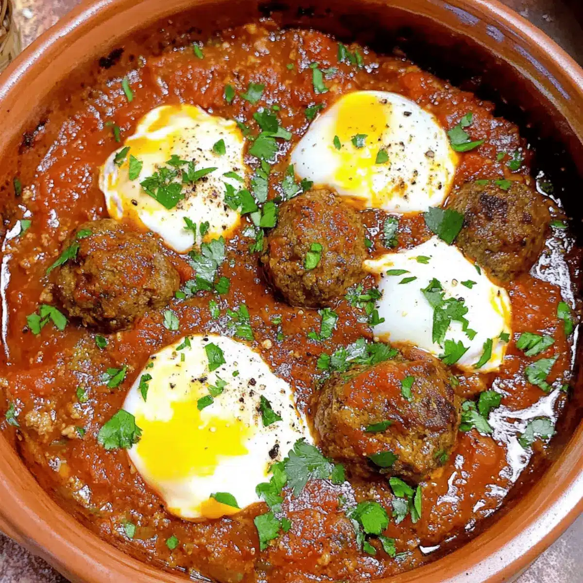 Savory Moroccan Meatballs in Tomato Sauce with Poached Eggs