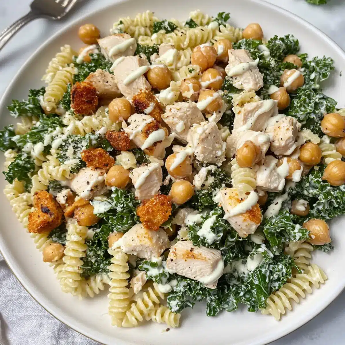 Kale Chicken Caesar Pasta Salad for a Healthy Summer Boost