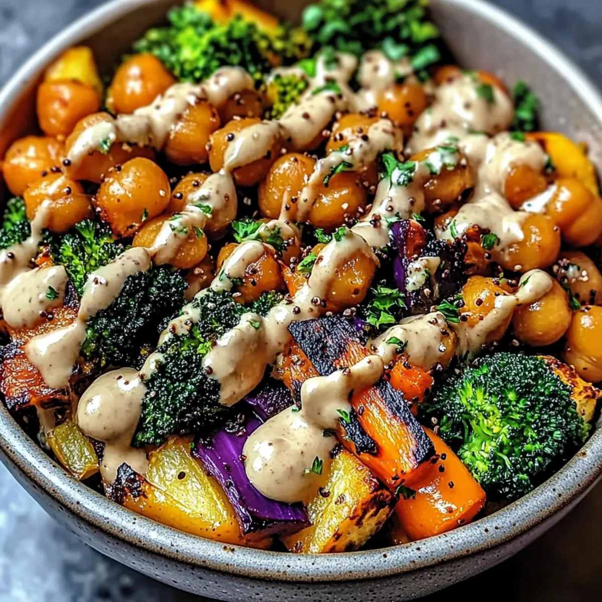 Mediterranean Roasted Veggie & Chickpea Bliss in a Bowl