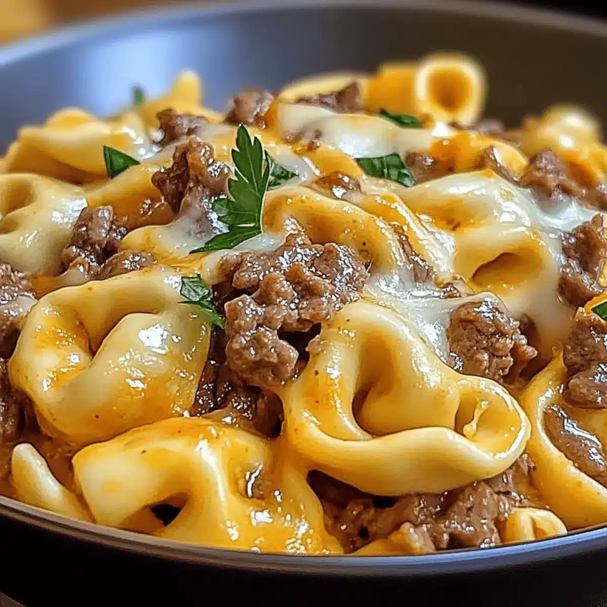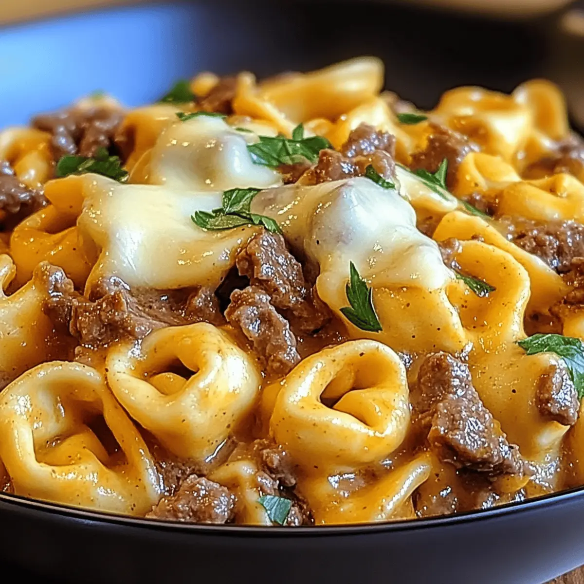 Slice beef against the grain for tenderness. Use high-quality tortellini for better flavor. Ensure cheese is at room temperature for smoother melting.