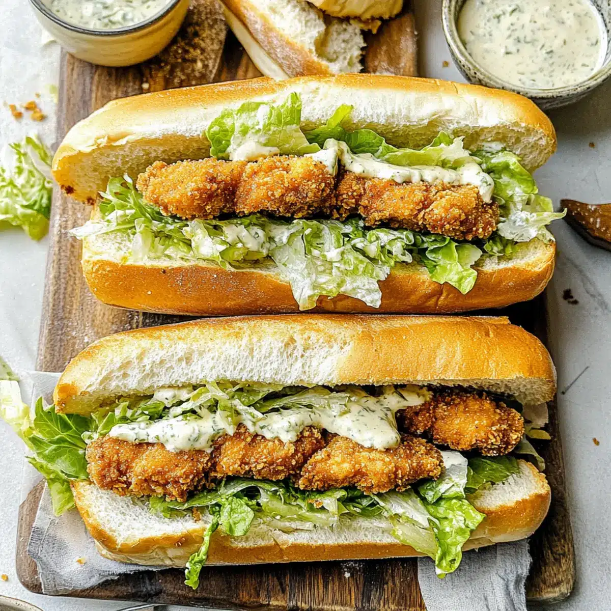 Delight in these Chicken Caesar Sandwiches featuring crispy chicken on garlic butter bread for a satisfying meal.