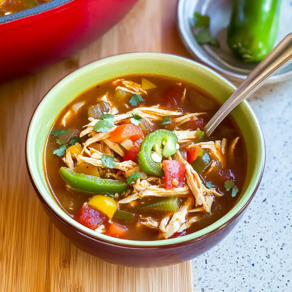 A warm, vibrant bowl of Chicken Fajita Soup that combines the zest of traditional fajitas in a healthy, low-fat form.