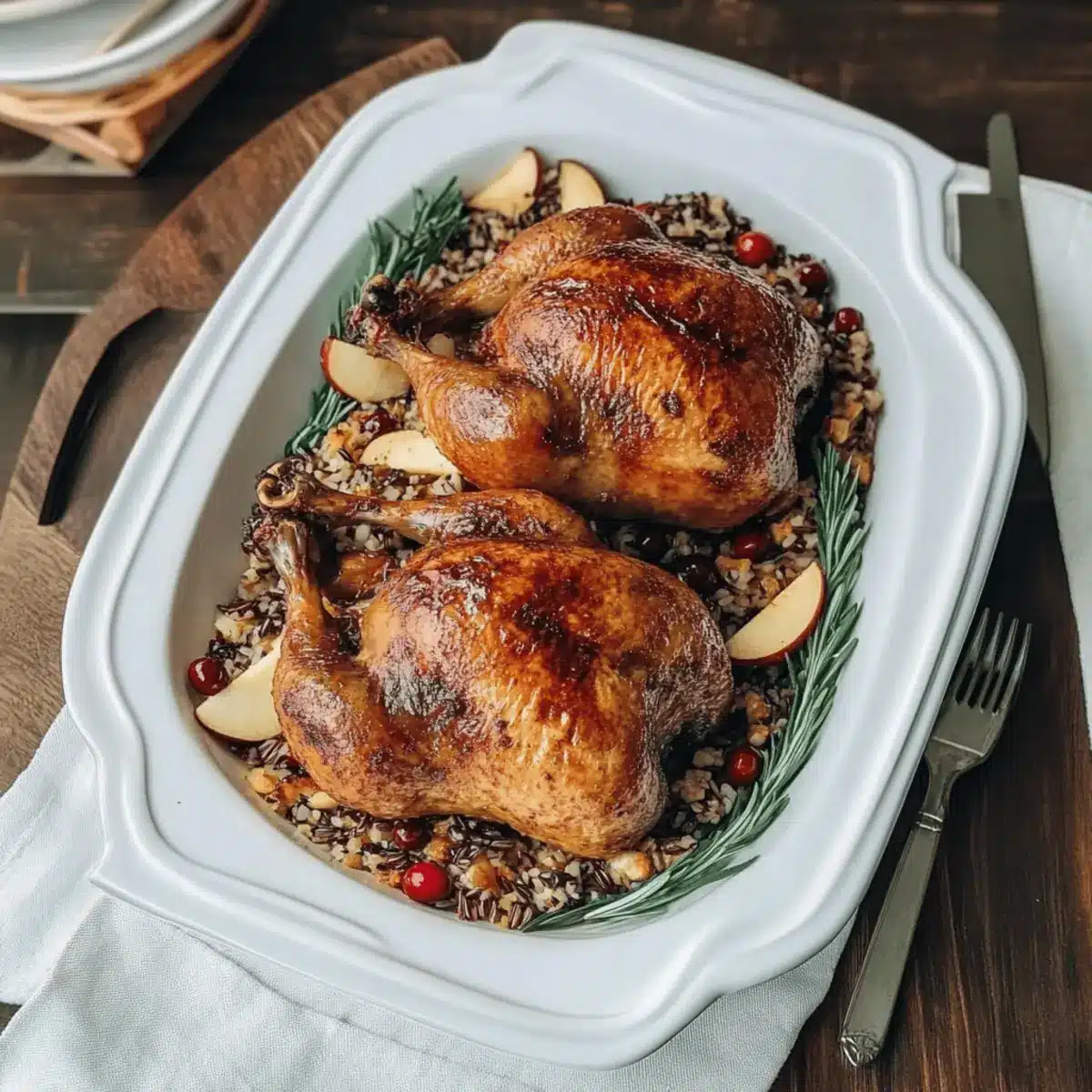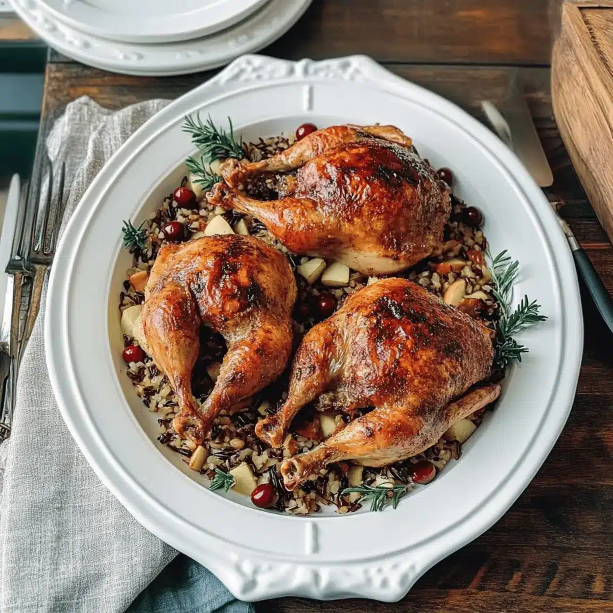 Embrace the flavors and textures that celebrate your Cornish Hens with Apple-Cranberry Rice Stuffing, creating a memorable dining experience for all!