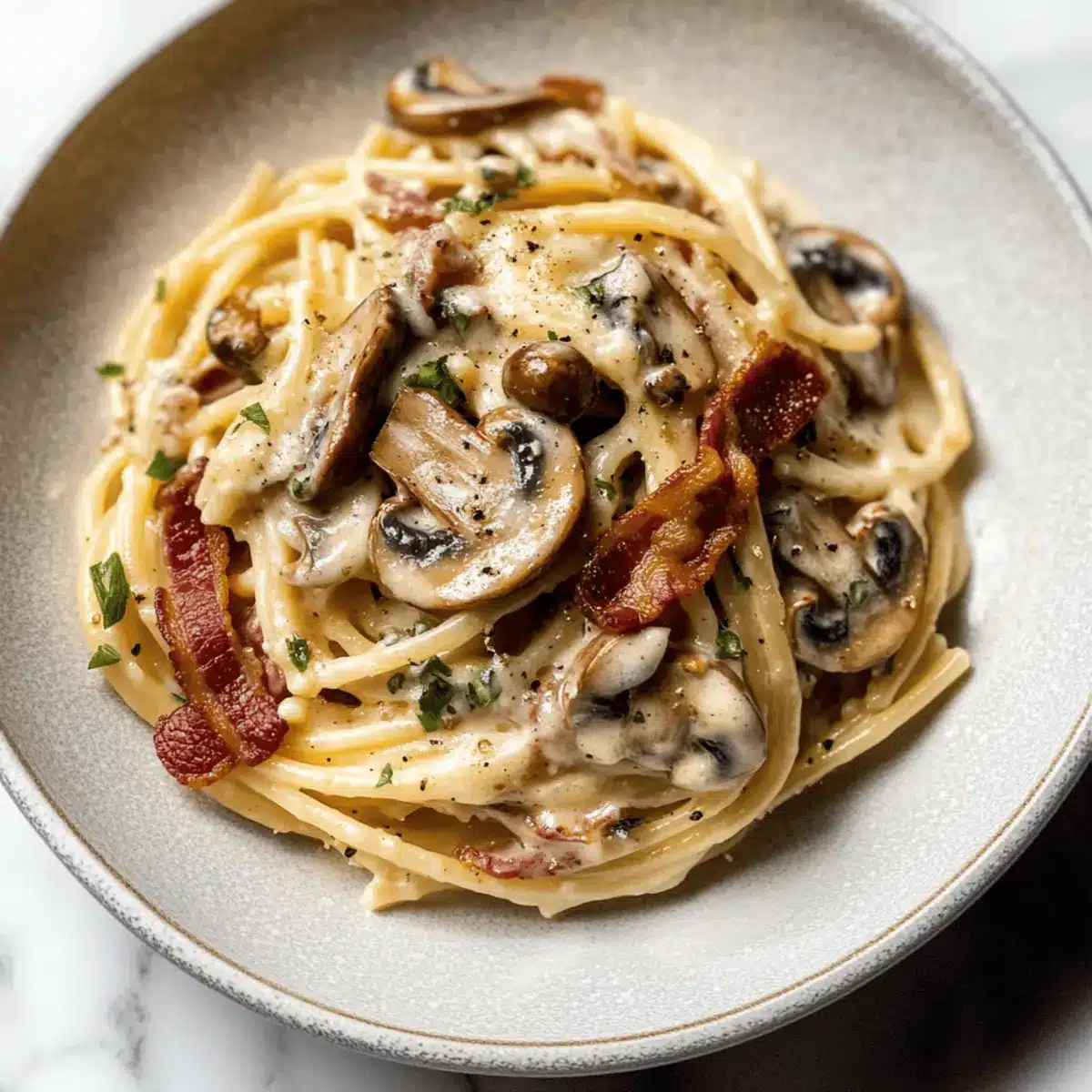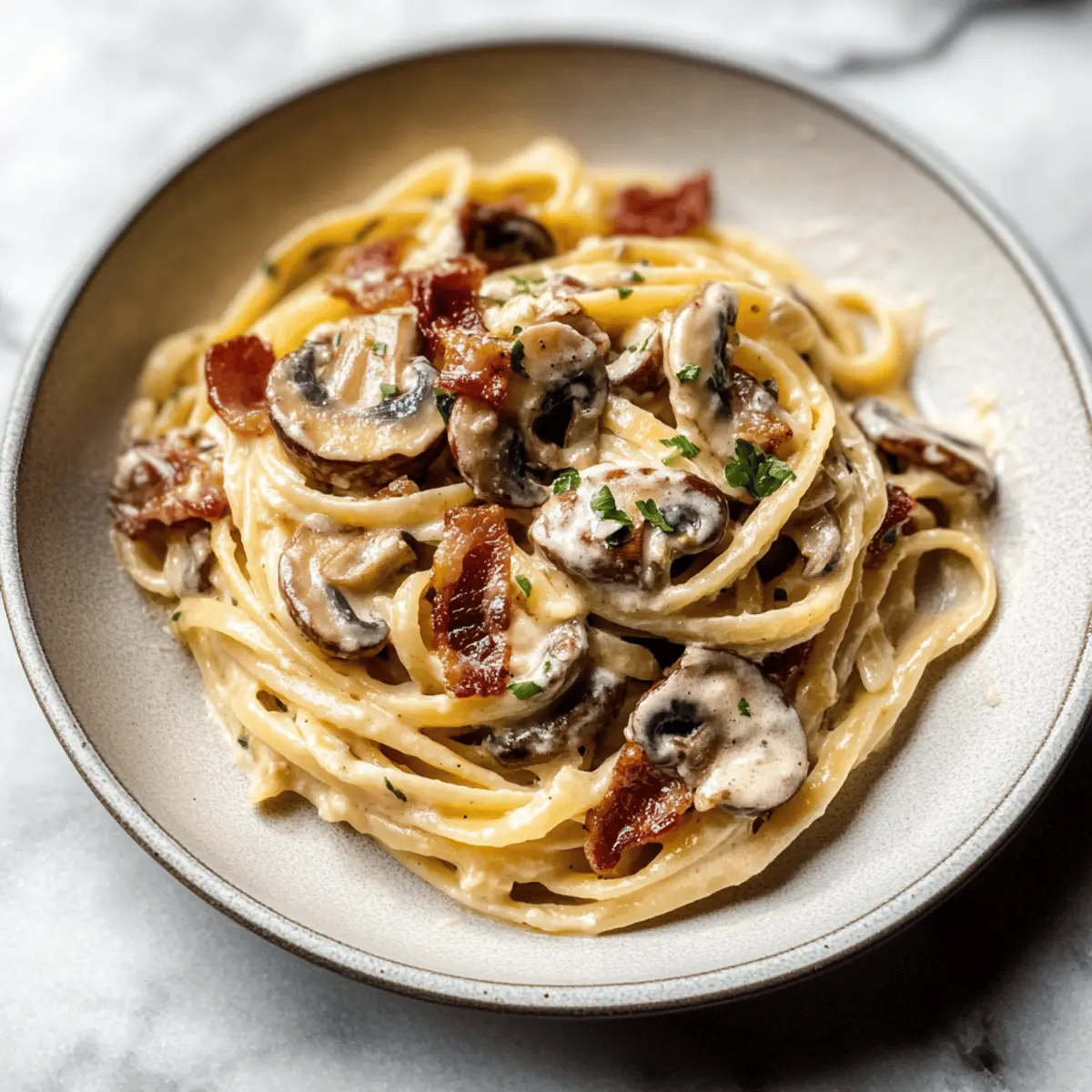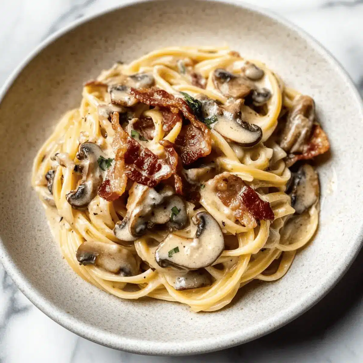 Indulge in this Creamy Bacon and Mushroom Pasta, a rich and comforting meal ready in just 30 minutes.