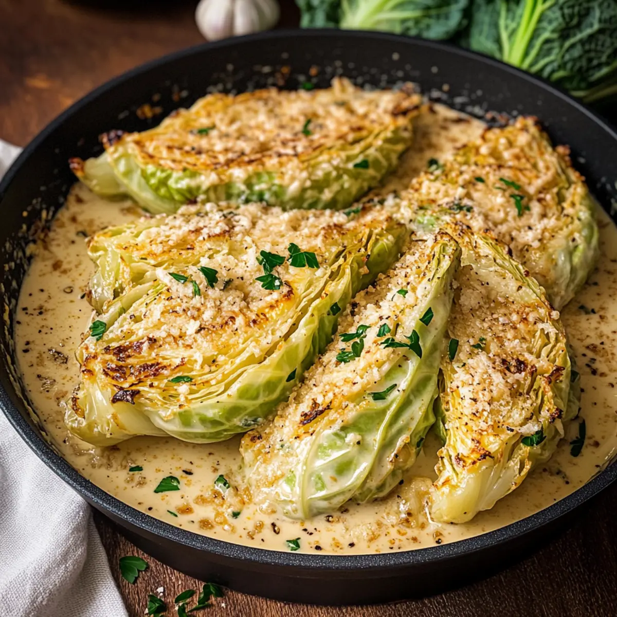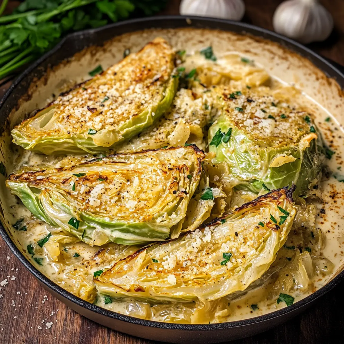 • Sear Properly: Avoid overcrowding the pan to ensure each cabbage wedge gets that beautiful golden brown crust. This enhances the flavor of your Creamy Garlic Parmesan Cabbage.