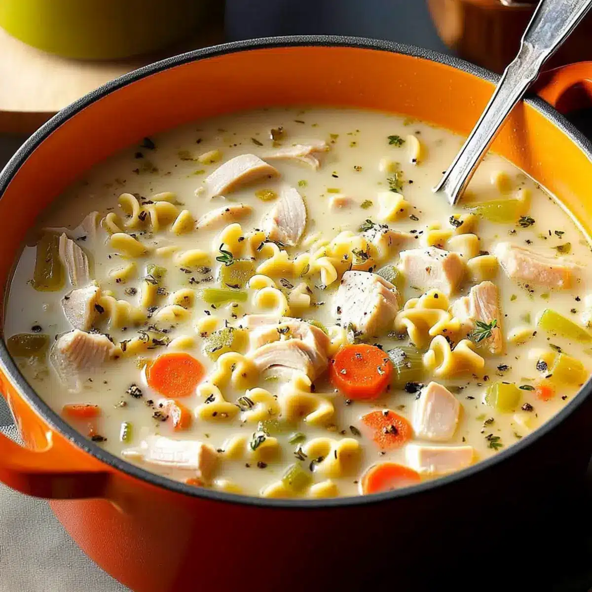 The sound of simmering broth and the aroma of garlic and herbs fill my kitchen as I whip up a pot of Creamy Turkey Noodle Soup. This quick comfort food not only warms the soul but also brings my family together for a cozy dinner. In just 35 minutes, you can serve up a delightful bowl filled with tender turkey, vibrant vegetables, and fun wagon-wheel pasta that’s sure to please. What’s more, this soup is so adaptable that it’s perfect for using up leftover turkey or chicken, making it a crowd-pleaser for both weeknight meals and special gatherings. Get ready to savor creamy goodness in every spoonful! Will you join me in creating this heartwarming dish?