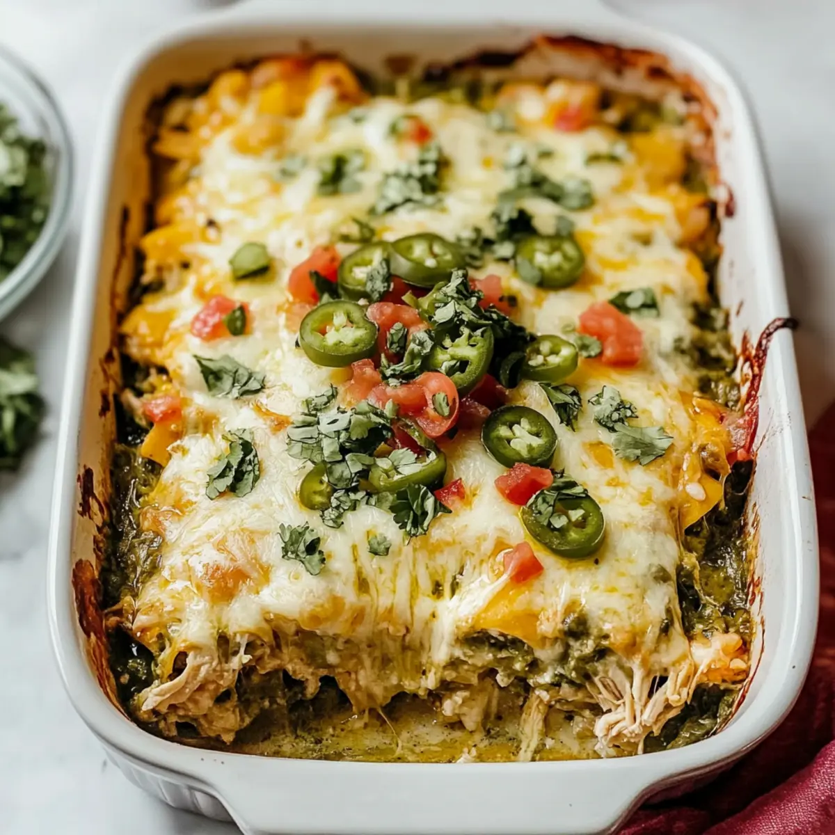 After baking, let your casserole rest for 10–15 minutes before slicing. This resting period allows the layers of your Delicious Salsa Verde Chicken Casserole to set perfectly, making it easier to serve slices that hold together beautifully.
