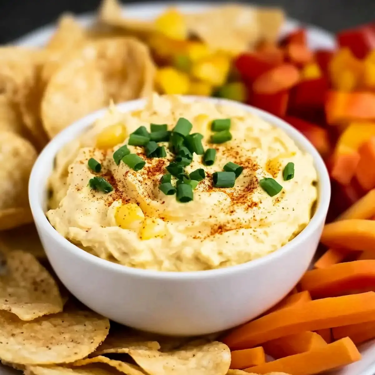 - Transfer to a serving bowl, garnish with paprika or cayenne pepper, and serve with chips, crackers, or veggies.