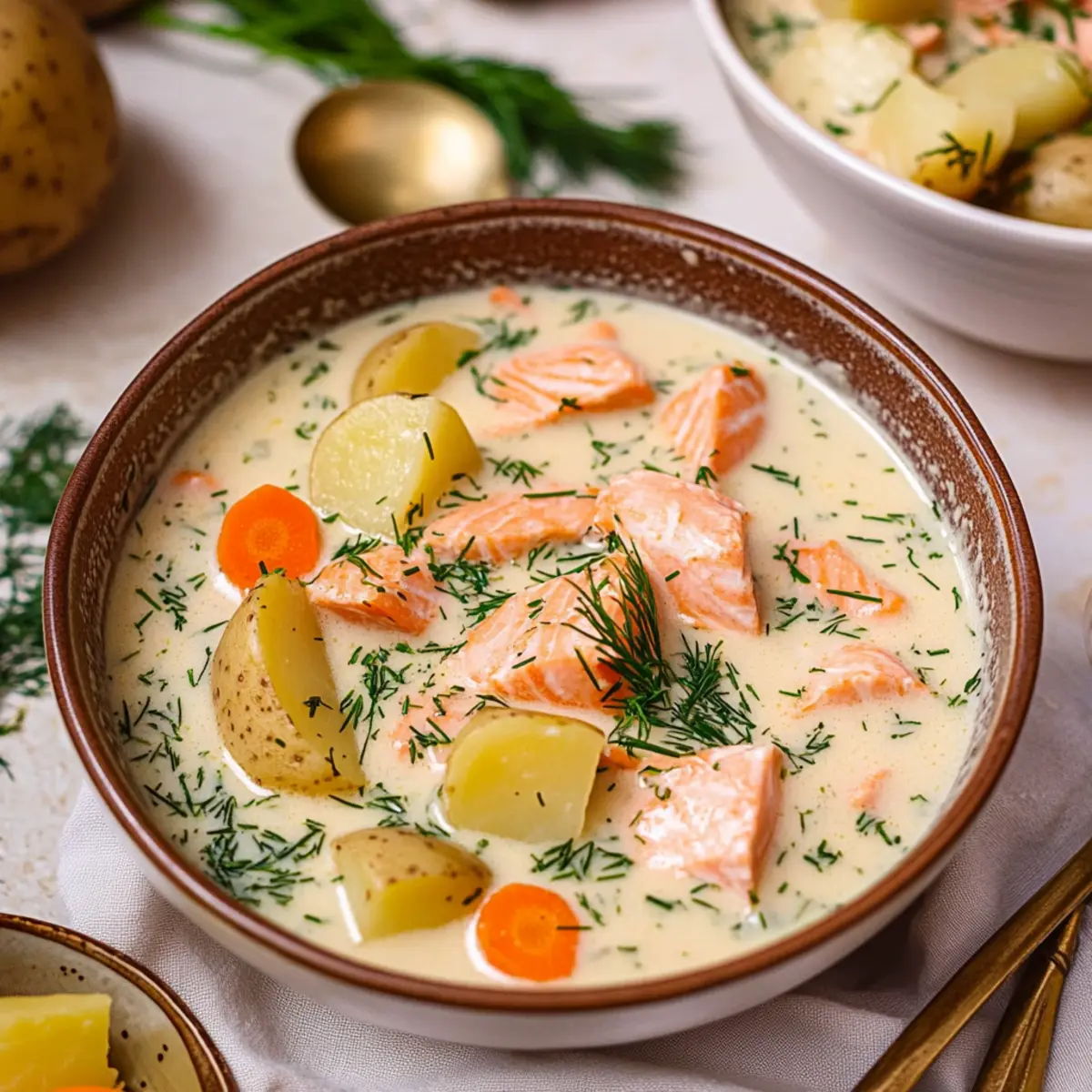 These Creamy Finnish Salmon Soup components are perfect for meal prep, allowing busy cooks to save time during the week. You can prepare the fish stock up to 24 hours in advance by boiling the salmon skins and storing the strained liquid in the refrigerator. The sautéed leeks can also be prepped ahead and refrigerated for up to three days to keep their freshness. Just be sure to let the soup simmer gently after adding the cream to maintain its creamy texture when reheating. When ready to serve, simply combine your prepped ingredients in a pot, add the salmon and dill, and enjoy a delightful, homemade meal that’s just as delicious and comforting as fresh!