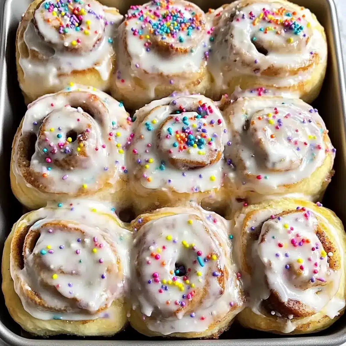 - Extra Confetti Sprinkles – Add a festive touch to the already delightful cinnamon rolls!