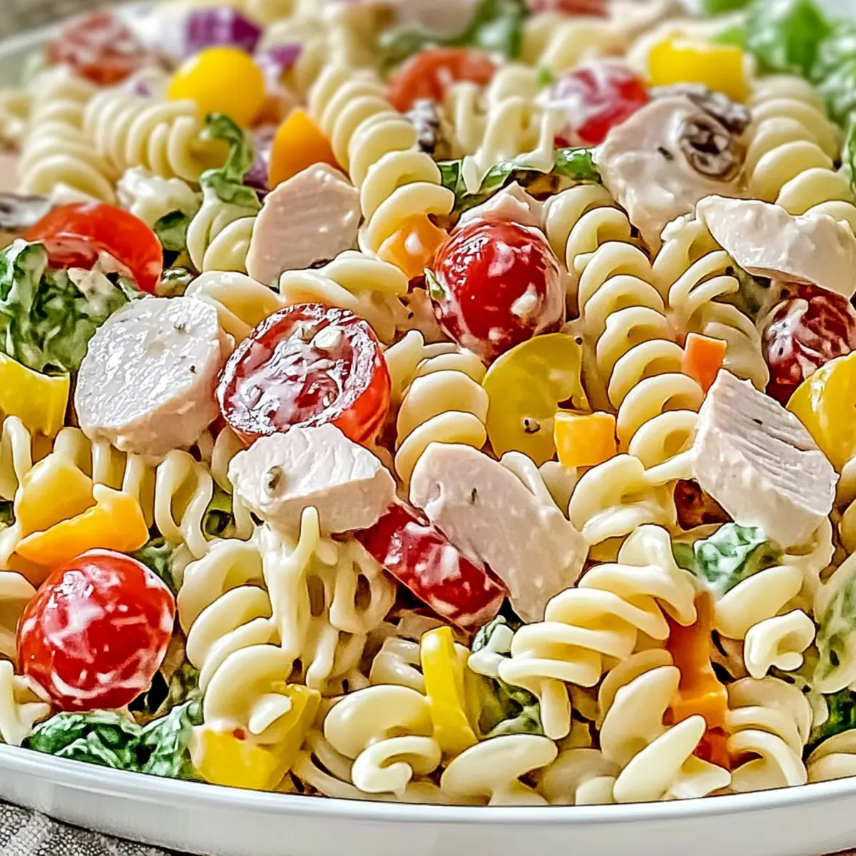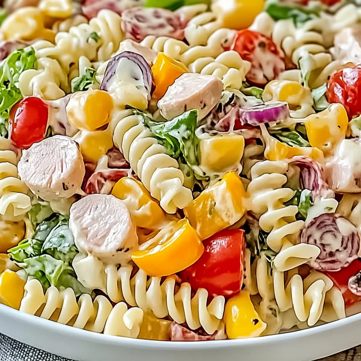 Customization is at the heart of this recipe, allowing you to create a dish that truly reflects your taste! Time-Saving preparation lets you whip this up in no time, perfect for busy weeknights. Flavorful combinations of meats, cheeses, and tangy dressing will satisfy even the pickiest eaters. Ideal for make-ahead meals, it stays fresh for days – making it a favorite for meal prep. For a refreshing side, why not pair it with a Peach Feta Salad? Embrace the creative possibilities, whether you choose a light vinaigrette boost or go all-in on the classic creamy dressing. This is more than just food; it’s artwork on a plate!