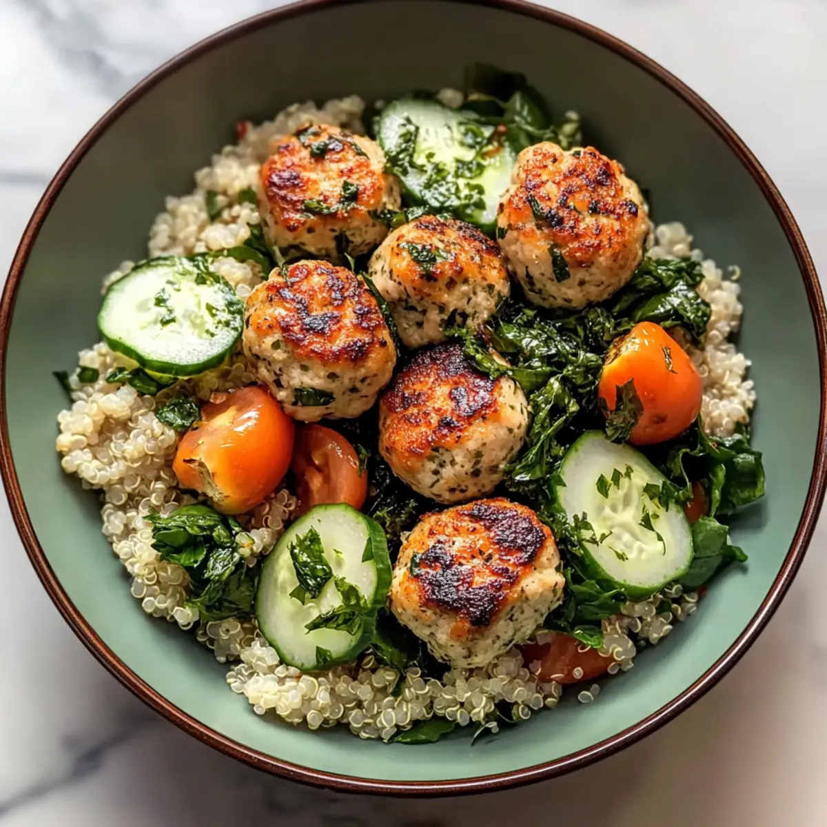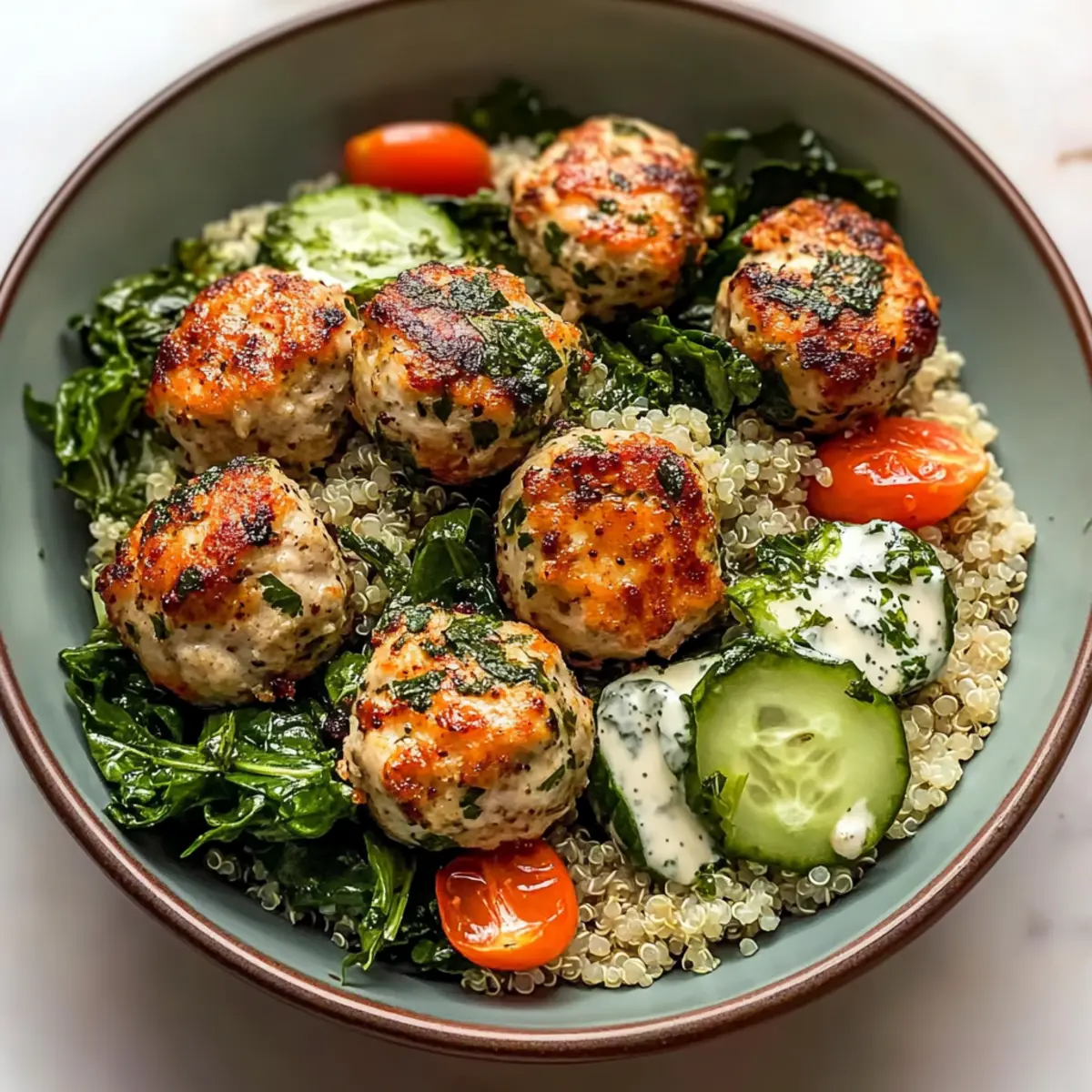 The aroma wafting through my kitchen as these meatballs bake takes me back to sun-drenched summer days spent sharing meals with loved ones. Welcome to the world of the Herbed Chicken Meatball Bowl, a dish that captures comfort while being incredibly nourishing. It balances juicy, herb-infused chicken meatballs on a bed of fluffy quinoa and fresh greens, resulting in a vibrantly colorful and healthy meal. This recipe not only caters to busy weeknights with its quick prep time, but it also invites customization, allowing everyone at the table to add their favorite flavors or seasonal veggies. Imagine diving into a dish that’s rich in protein and flavor yet maintains a lightness that won’t weigh you down—perfect for those of us striving to leave the fast-food craze behind. Are you ready to explore the endless possibilities of this delightful bowl?