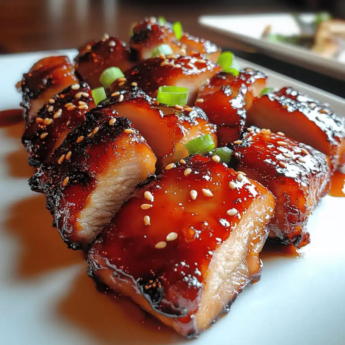 Remove the chicken from the oven or grill, and let it rest for about 5 minutes to retain its juiciness. Serve your delicious Char Siu Chicken, garnished with fresh green onions and a sprinkle of toasted sesame seeds. The vibrant colors and enticing aroma will make this dish a showstopper at your dinner table!