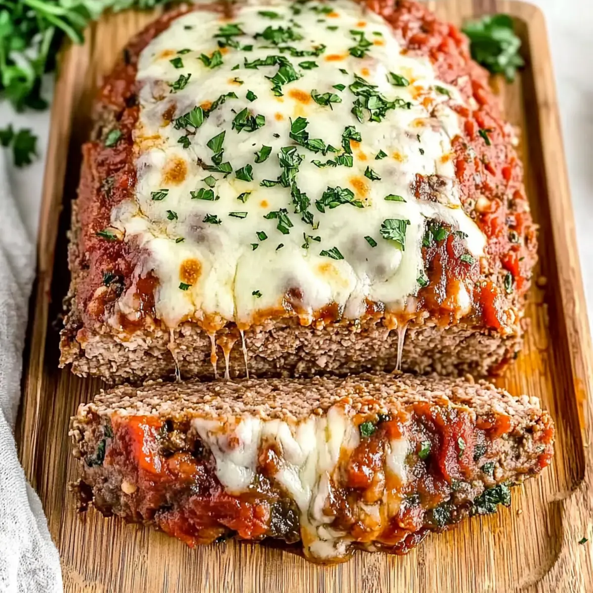 Once fully baked, take your Italian Meatloaf out of the oven and allow it to rest for about 10 minutes before slicing. This resting period helps the meatloaf maintain its shape and juiciness. Garnish with freshly chopped parsley for a beautiful presentation and serve warm to enjoy all the comforting flavors!