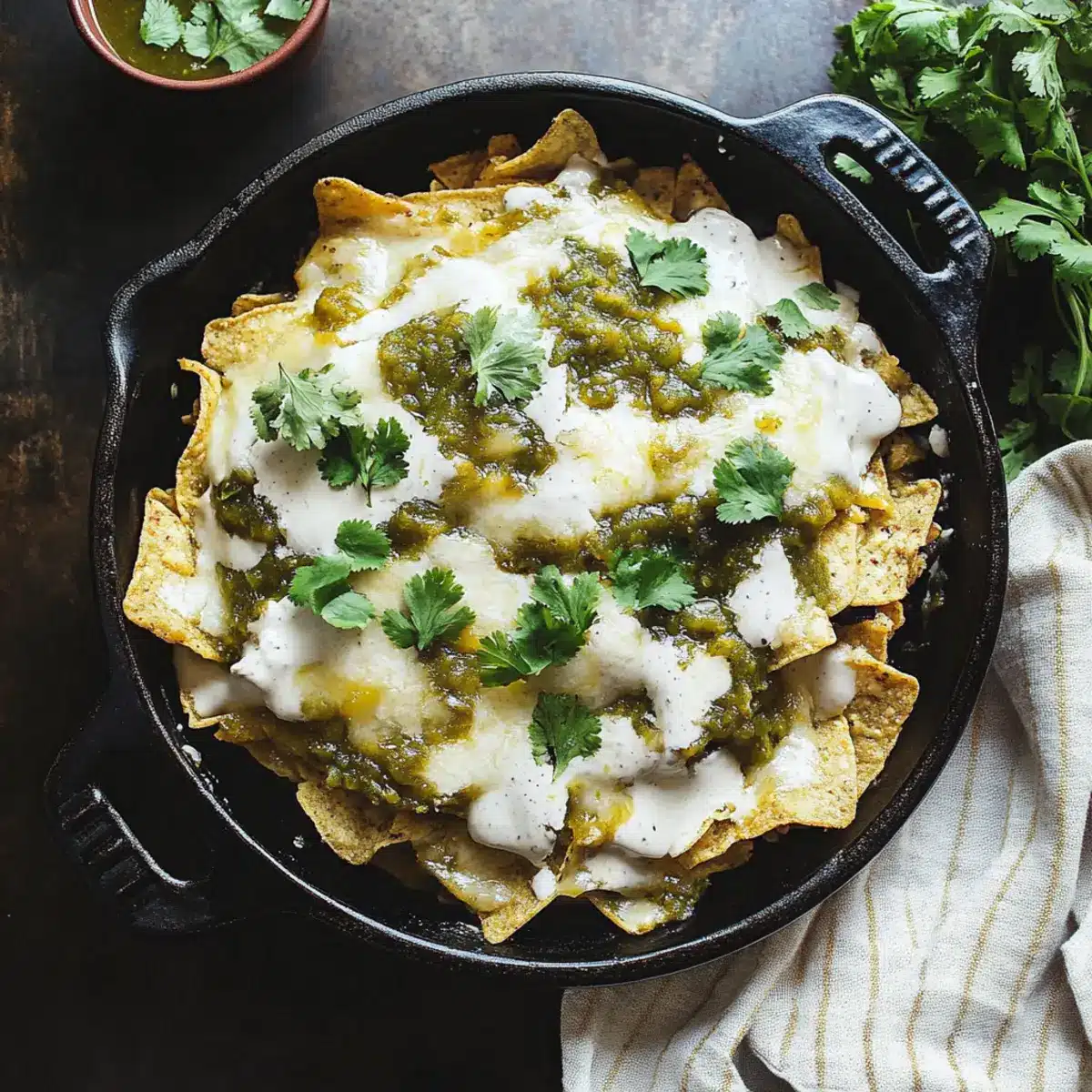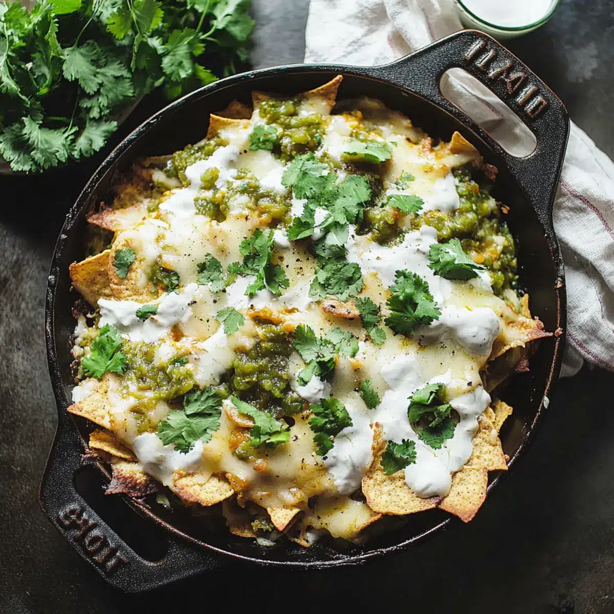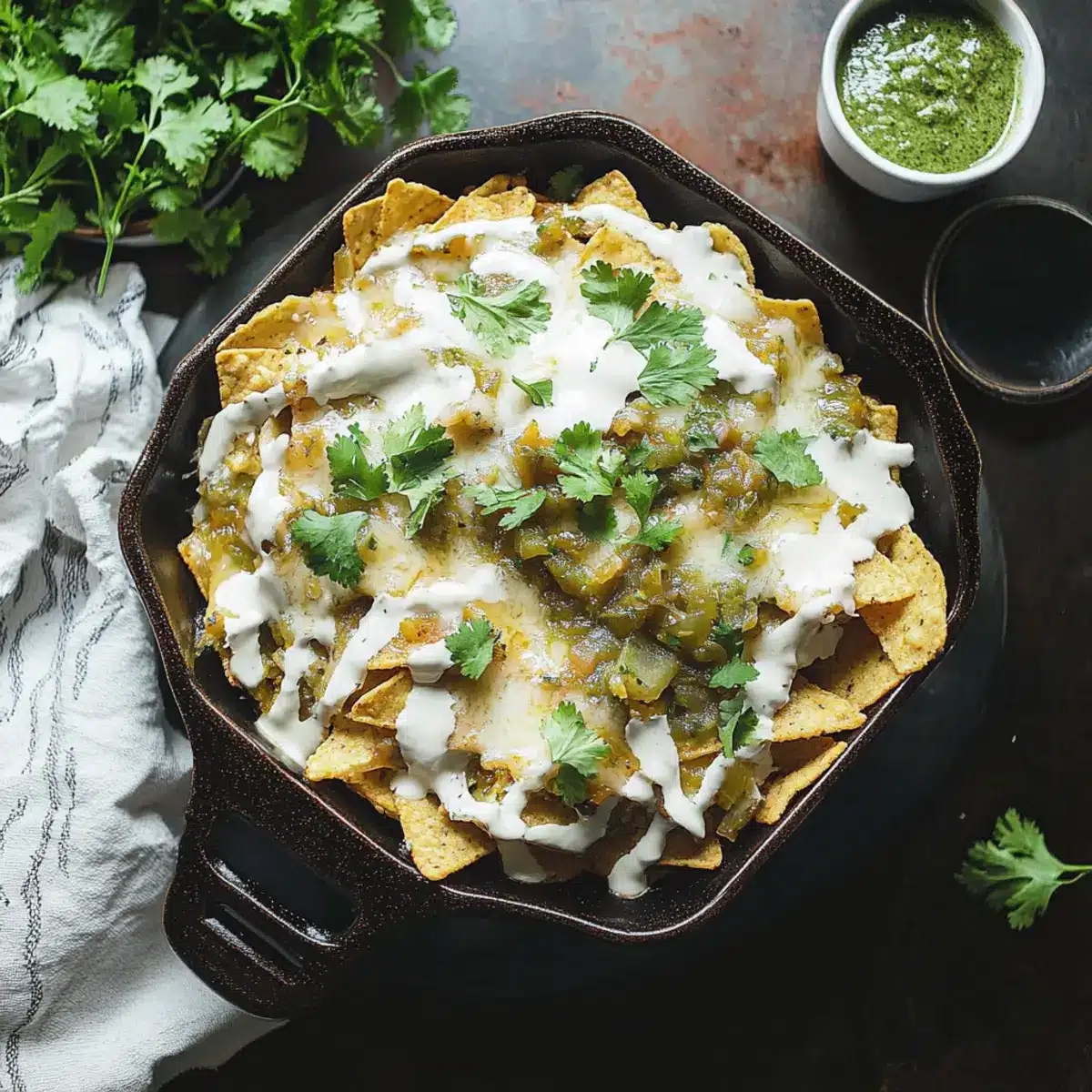 Carefully remove the skillet from the heat and garnish your chilaquiles with any additional toppings of your choice, such as extra cilantro or slices of avocado. Serve immediately, ensuring every plate captures the vibrant colors and delicious aromas. Enjoy the delightful combination of textures and flavors that makes Jorge’s Green Chilaquiles a comforting dish perfect for any meal!