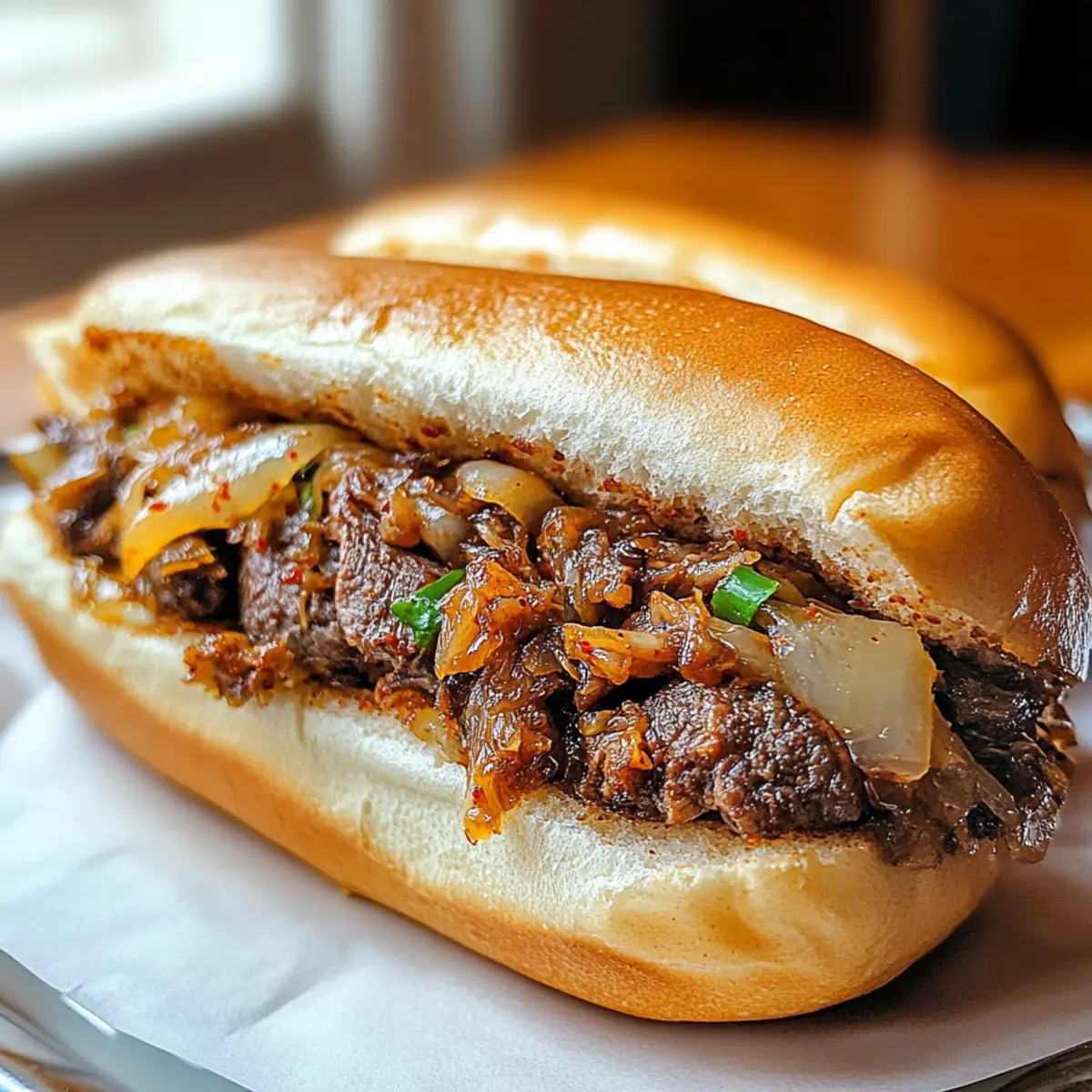 This Kimchi Bulgogi Cheesesteak is a delicious fusion of Korean bulgogi and classic cheesesteak flavors.