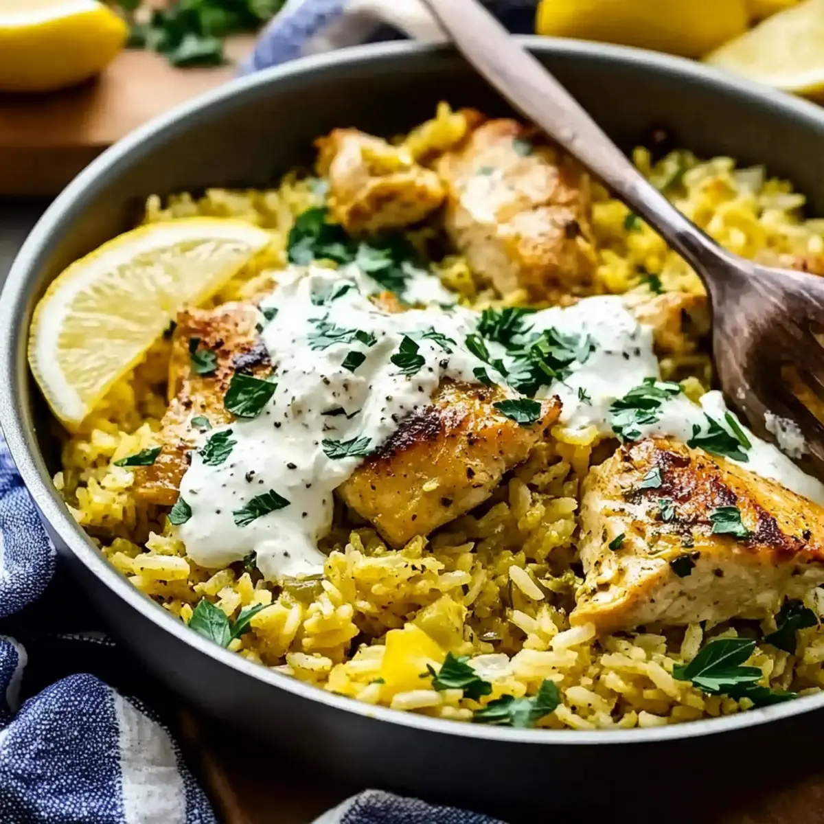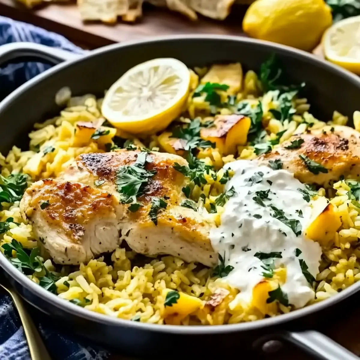 Once the rice is tender and the chicken is golden and cooked through, take the dish out of the oven. Use a fork to fluff the rice gently, mixing it with the chicken. Feel free to season with extra salt and pepper as desired. Serve your delightful dish with tzatziki, fresh herbs, and lemon wedges for a refreshing garnish that will elevate your meal even further.