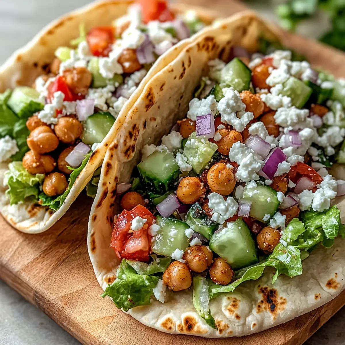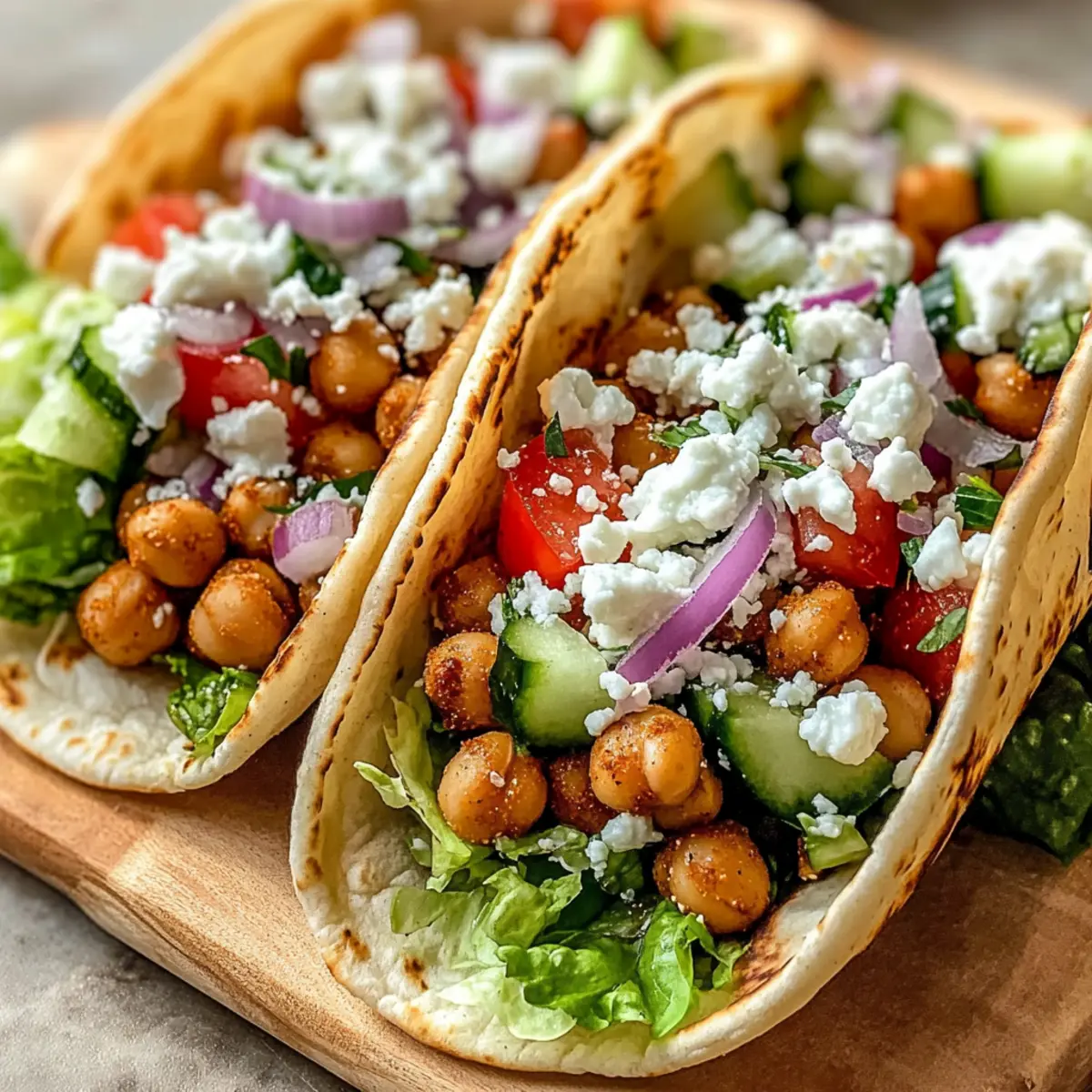 3. Assemble the Tacos: Place warmed pita breads on plates. Distribute chickpea mixture evenly among each pita.