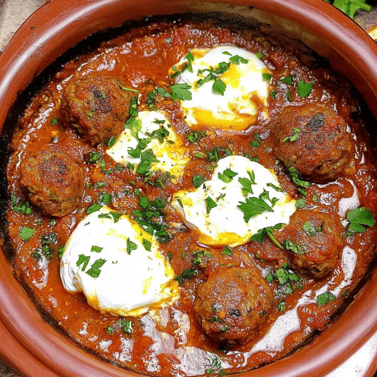Savory Moroccan Meatballs in Tomato Sauce with Poached Eggs