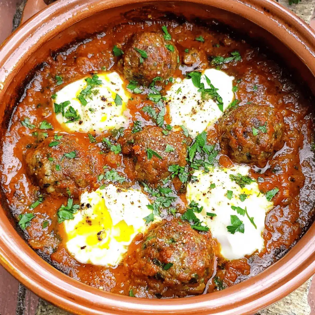 These Moroccan Meatballs (Kefta Mkaouara) are perfect for meal prep enthusiasts! You can prepare the meatballs and the tomato sauce up to 24 hours in advance; simply store them separately in airtight containers in the refrigerator. The flavors of the meatballs will deepen as they marinate, ensuring they are just as delicious when cooked. When you’re ready to serve, gently reheat the sauce in a pan, add the chilled meatballs, and let them simmer until cooked through. For the poached eggs, create the wells and follow the original instructions, cooking them fresh to maintain that perfect texture. This approach saves you time and effort on busy weeknights!