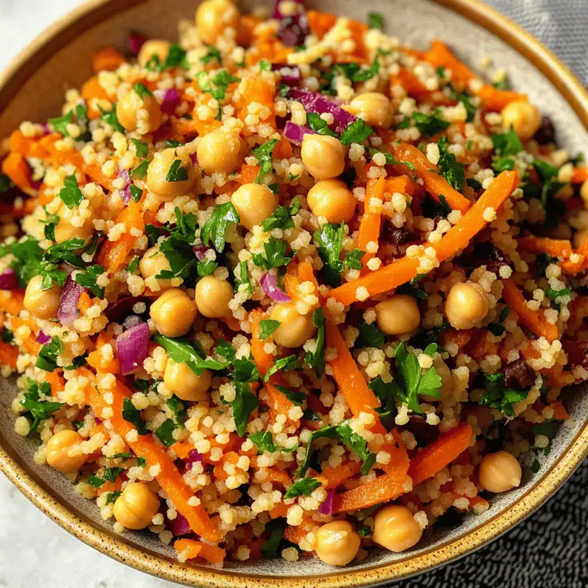 Sinking my fork into a vibrant bowl of Moroccan-Spiced Chickpea and Carrot Couscous Salad feels like a mini vacation to North Africa. This delightful dish combines warm spices and colorful ingredients, making it perfect for a quick and wholesome meal any day of the week. Not only is this salad a breeze to whip up, but it also packs a flavorful punch that can impress guests at your next potluck or serve as a refreshing light dinner. Plus, it’s versatile enough to accommodate gluten-free diets with just a simple switch to quinoa or rice. Are you ready to dive into a bowl of this nourishing and delicious goodness? Let’s get started!