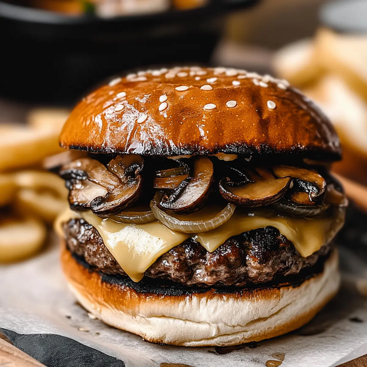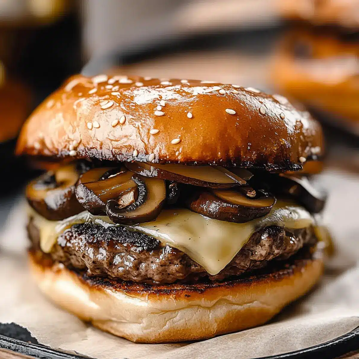 This Mushroom Swiss Burger combines tender beef, earthy mushrooms, and creamy Swiss cheese for a mouthwatering comfort food experience.