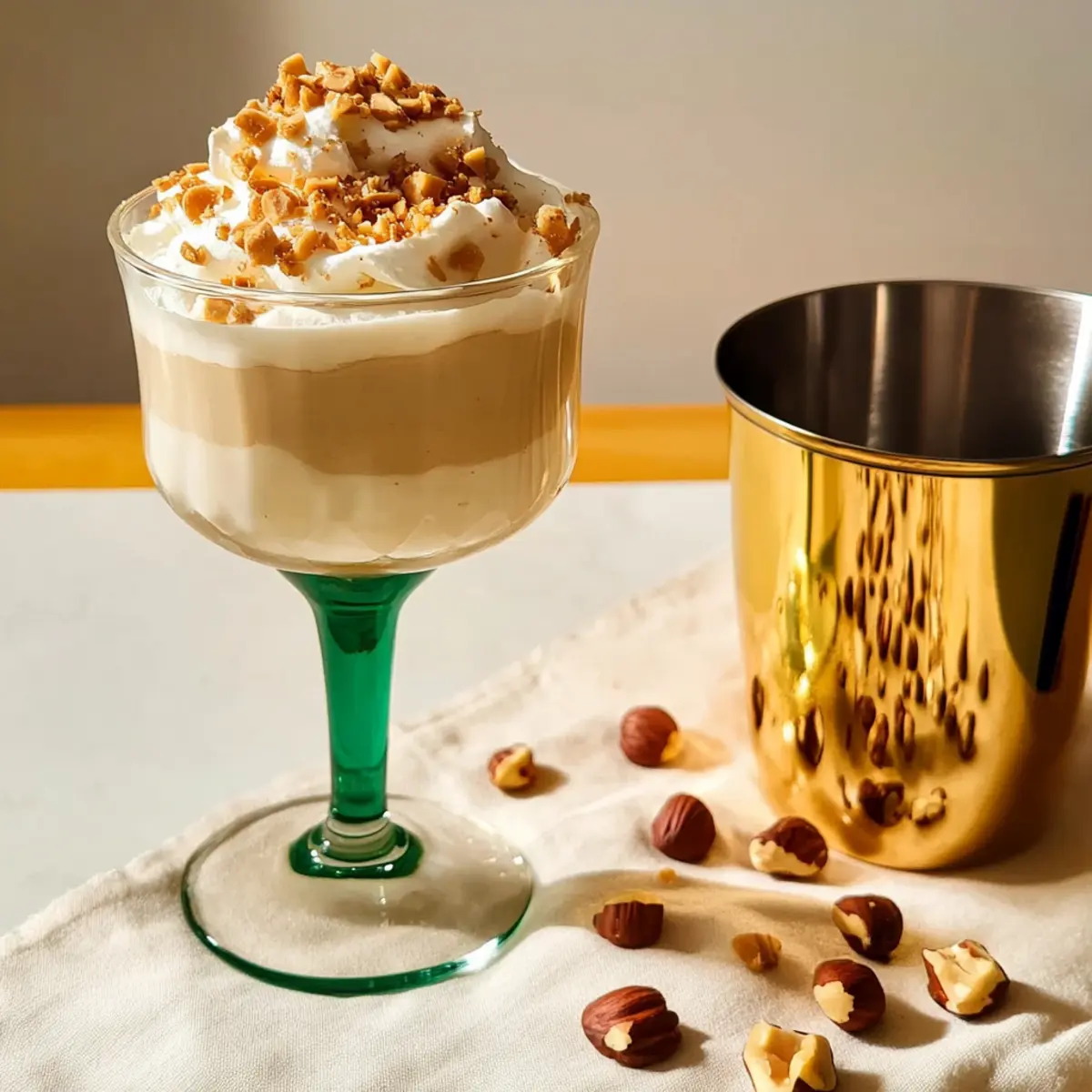 6. Present your Nutty Irishman cocktail right away, ideally garnished with a whole hazelnut or a flourish of additional whipped cream.