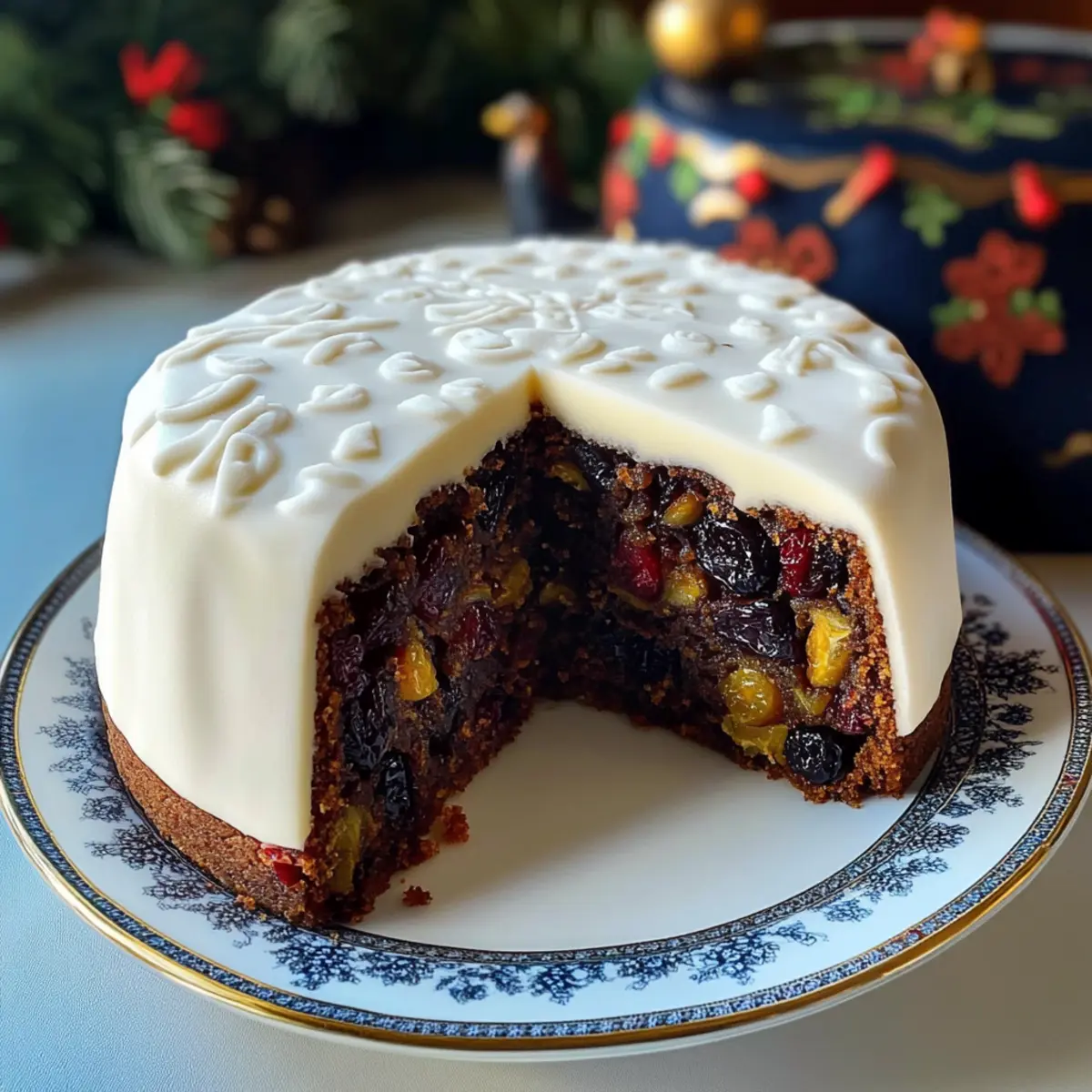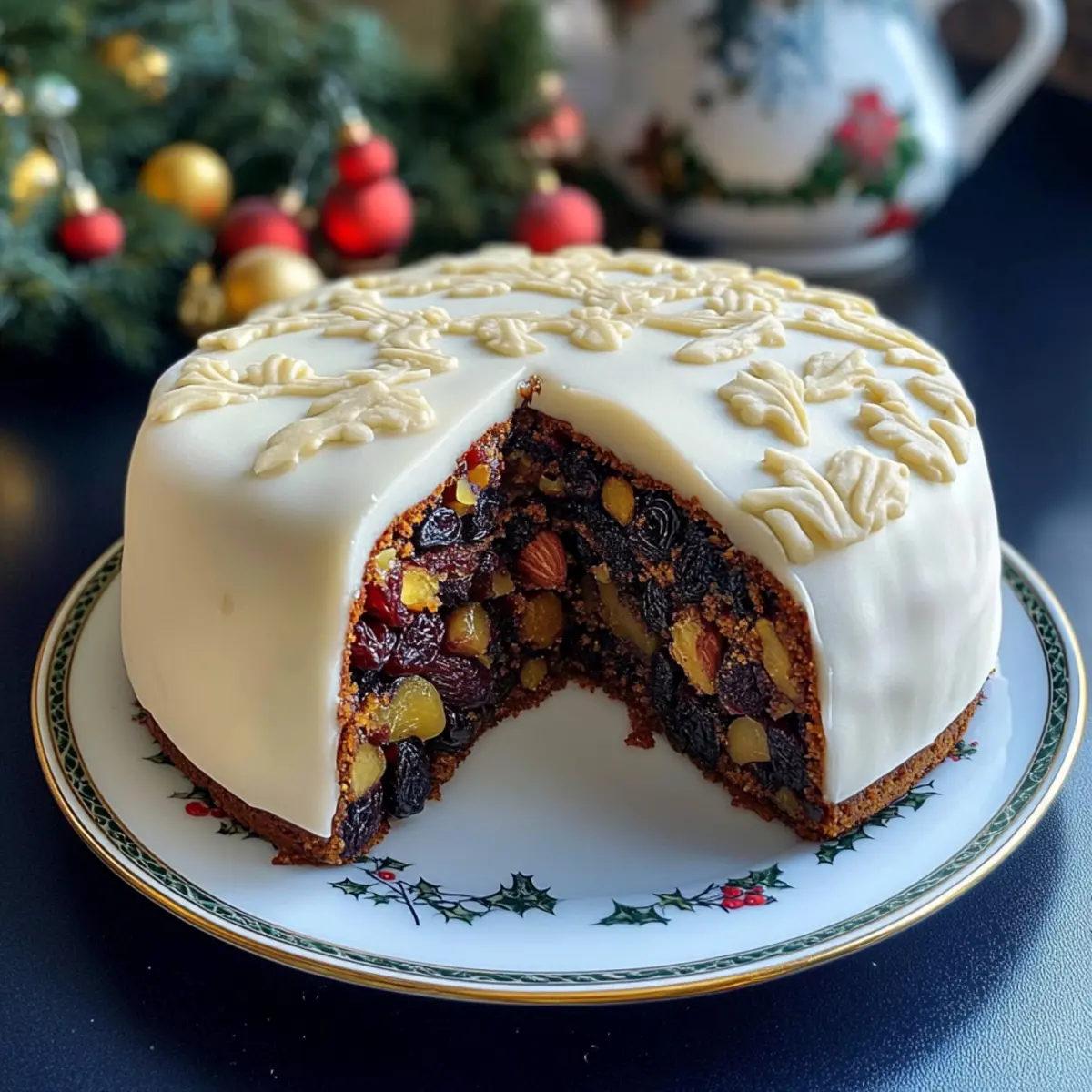 A day or two before serving, unwrap the cake and cover it with marzipan followed by a layer of royal icing. If desired, you can use store-bought icing to simplify the process. This decorative touch enhances the festive appearance of your Old Fashioned British Christmas Cake, making it a true showstopper for celebrations.