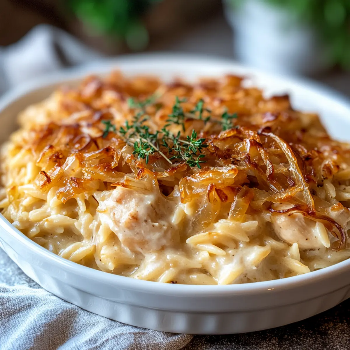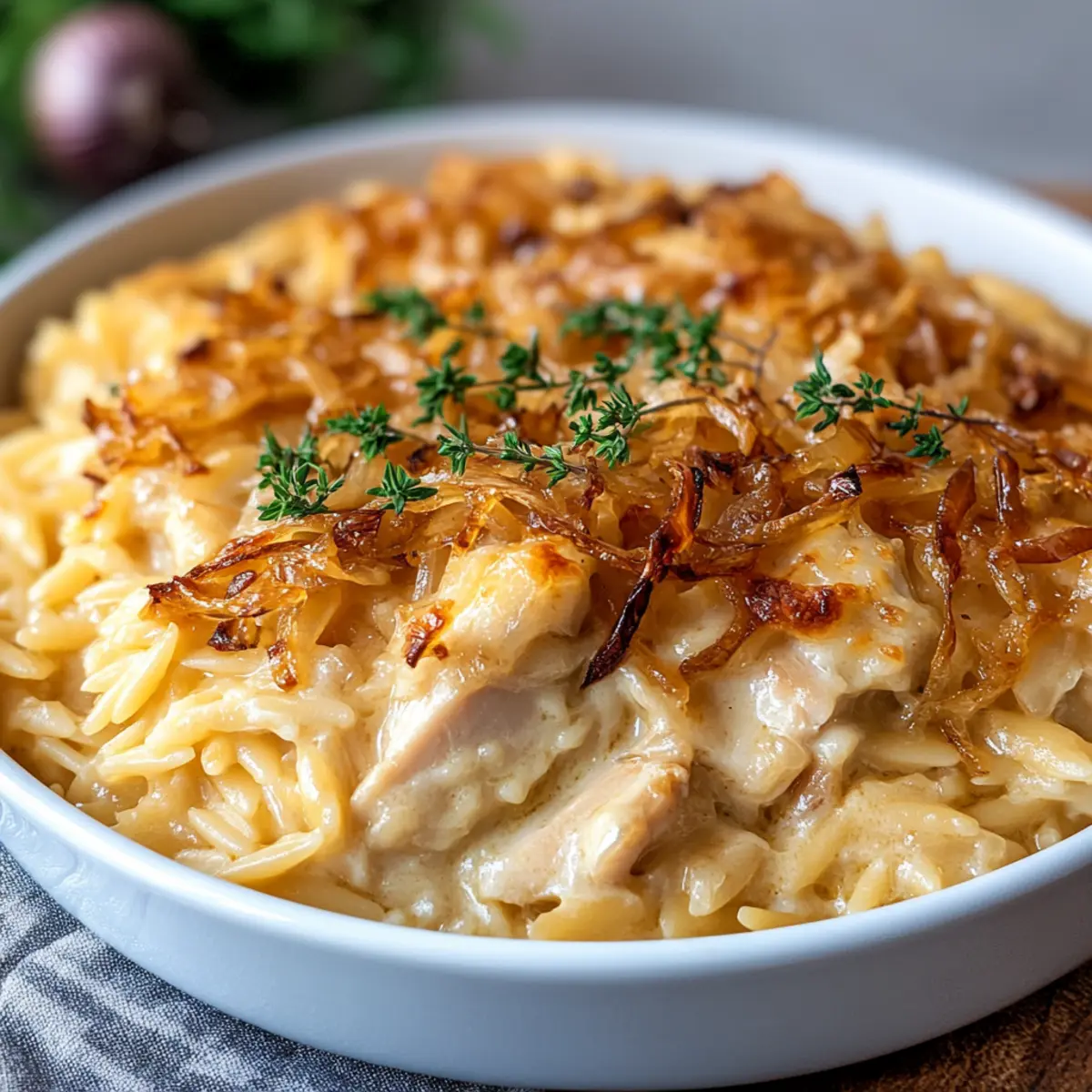 Creamy Onion Chicken Orzo Casserole for Cozy Nights