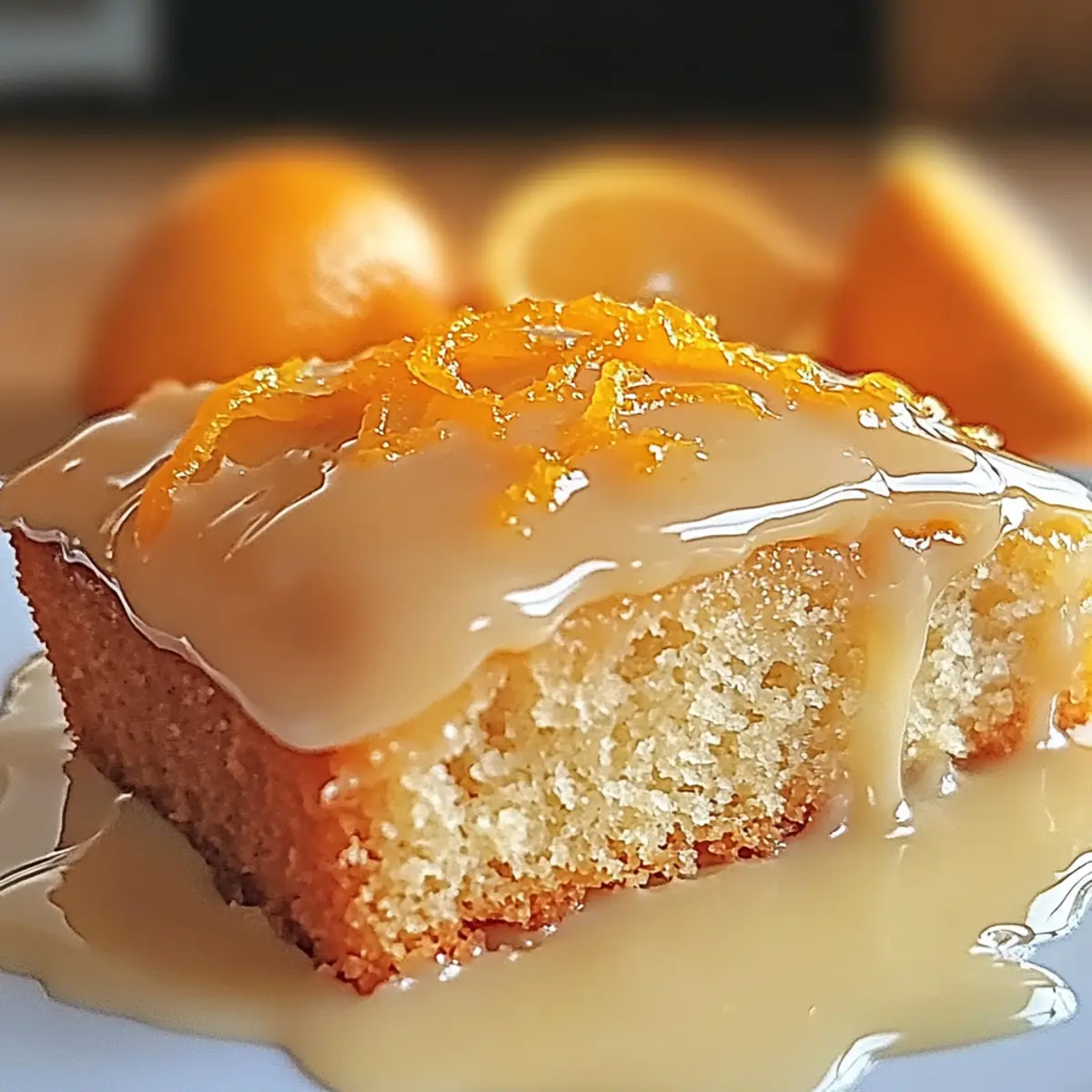 8. Drizzle the glaze over the cooled cake and garnish with orange zest before serving.