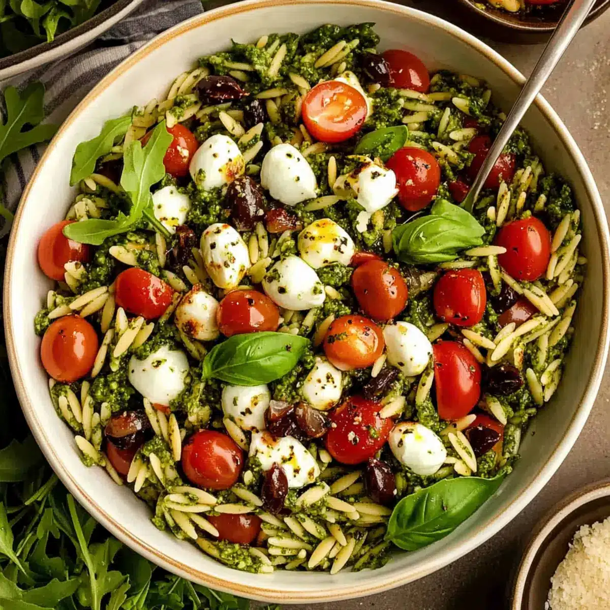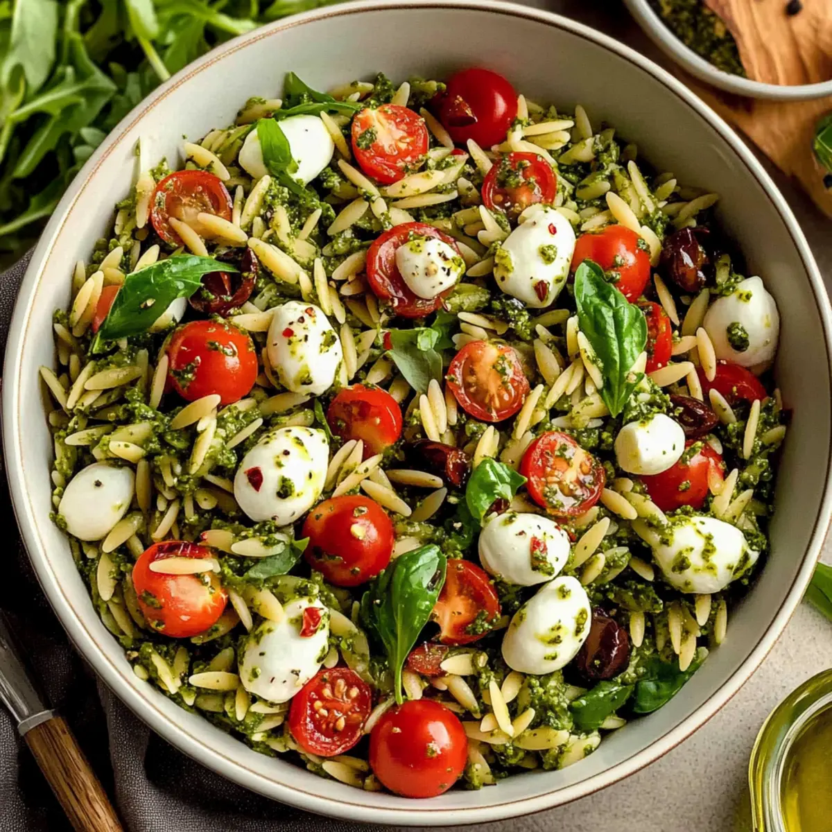 As I prepped for a sunny picnic last week, I found myself craving something vibrant and refreshing. That’s when I whipped up this delightful Orzo Salad with Pesto, and let me tell you—it was a game changer! This cold pasta salad combines tender orzo with the rich notes of homemade basil pesto, sweet cherry tomatoes, and creamy mozzarella, making it the perfect highlight for any summer gathering. Not only is it a quick and easy recipe to throw together, but it’s also a nutritious vegetarian dish that will satisfy even the hungriest guests. Whether you serve it alongside grilled chicken or on its own, you’ll discover a salad that’s as versatile as it is delicious. Ready to dive into a meal that screams summer? Let’s get started!