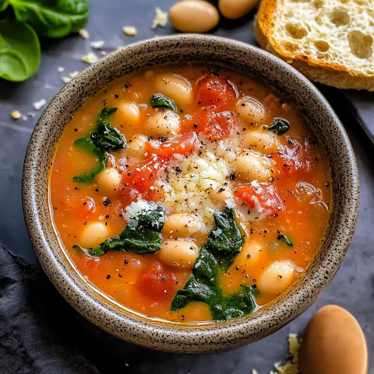 A comforting Parmesan Tomato Cannellini Bean Soup that's perfect for cozy nights.