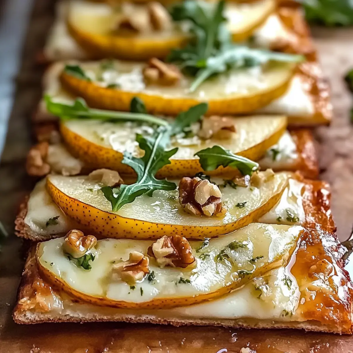 These Pear and Gorgonzola Flatbread ingredients are perfect for meal prep enthusiasts! You can slice the pears and crumble the Gorgonzola cheese up to 24 hours in advance, storing them separately in airtight containers to maintain freshness. Additionally, you can also prepare the flatbread base by rolling out the puff pastry or arranging the flatbread on a baking sheet earlier in the day. When you’re ready to serve, simply assemble the prepped ingredients and bake as directed. This approach not only saves time during hectic weeknights but ensures your flatbread is just as delicious, allowing you to enjoy all its sweet and savory goodness with minimal effort!