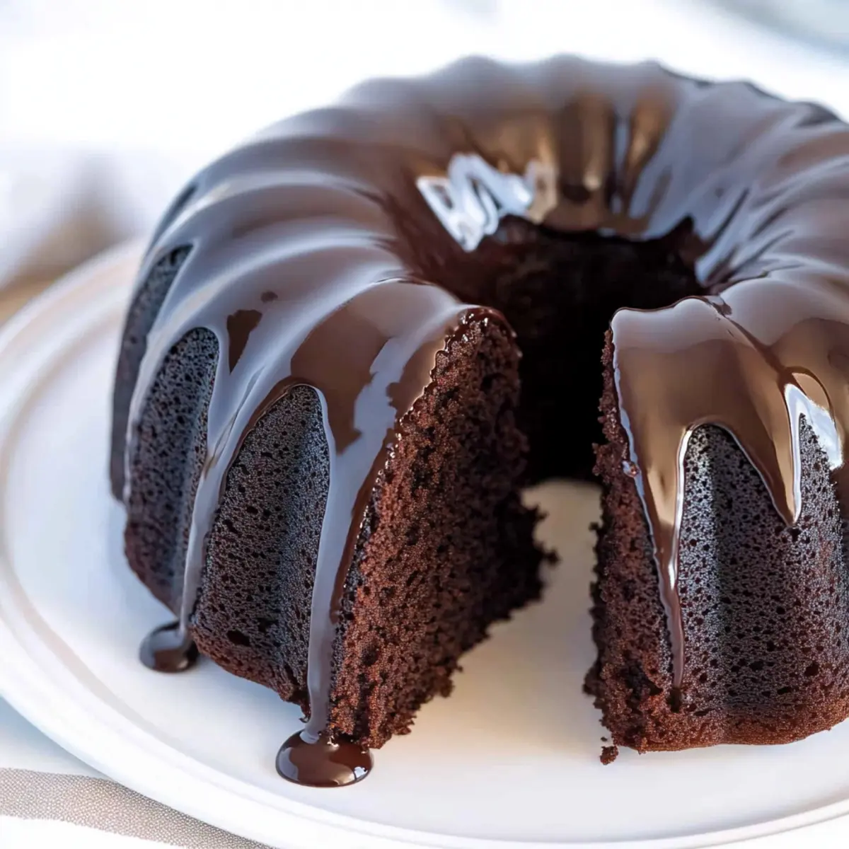 Pour the silky ganache over the cooled Perfect Chocolate Bundt Cake, allowing it to drip down the sides for an enticing presentation. Gently tap the cake to encourage even distribution of the ganache. Serve immediately for a delicious treat or let it set for a more decadent finish.