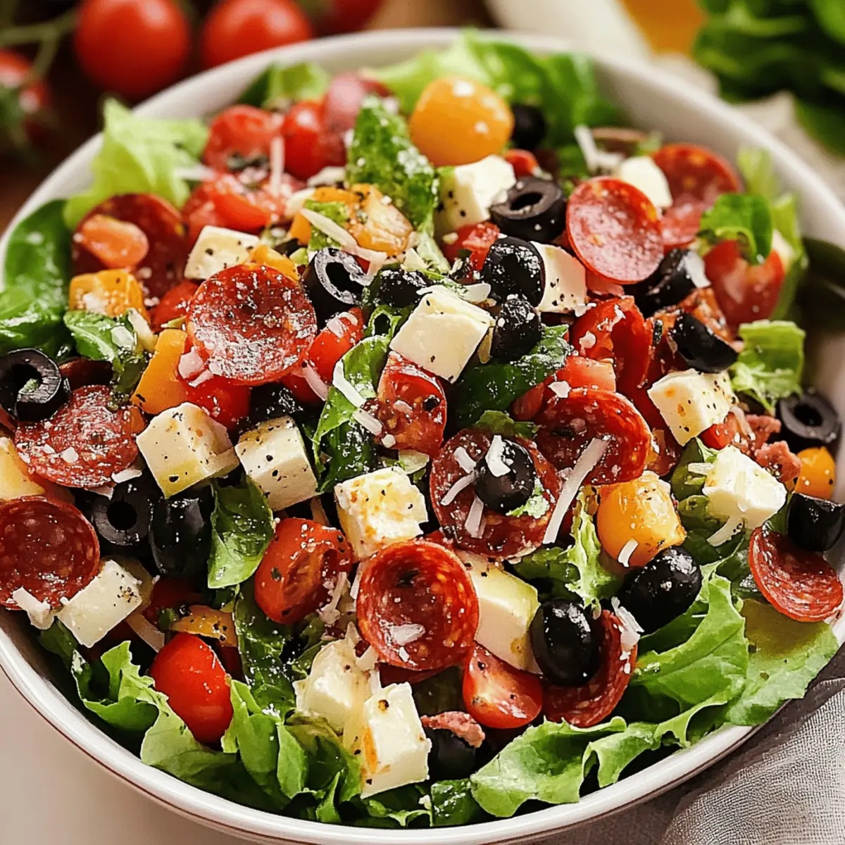 Discover the fresh ingredients that make this Pizza Salad a delightful, nutritious option!