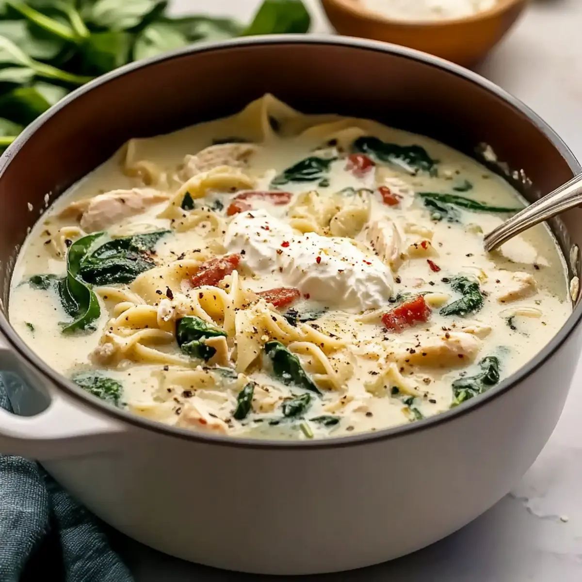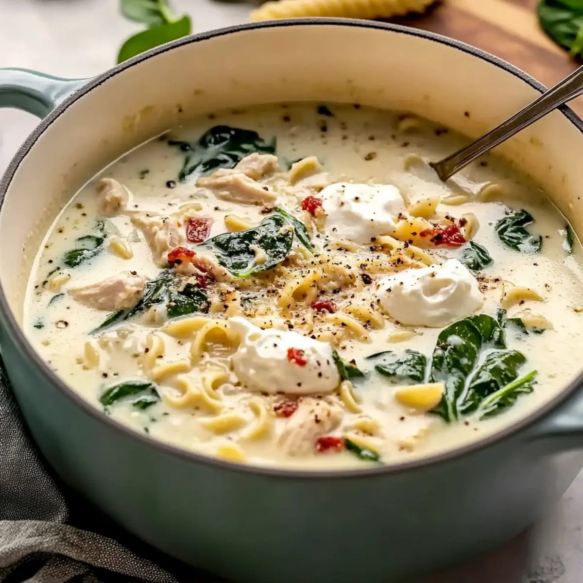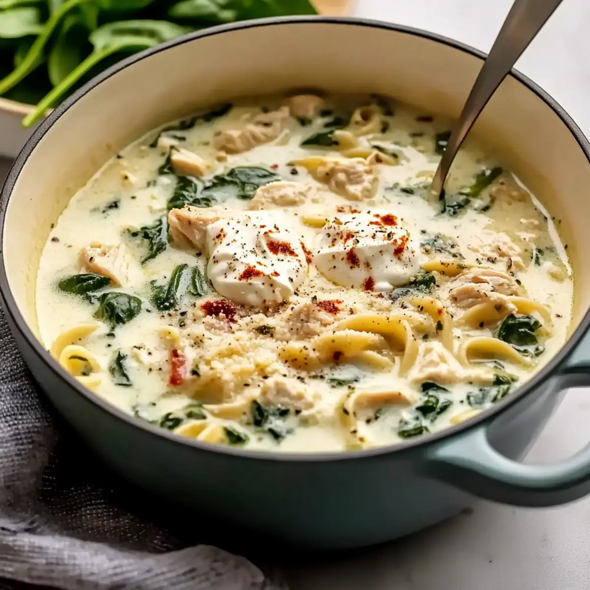 Kale Swap: Replace spinach with kale or Swiss chard for a hearty green option, adding nutritional value and a slightly different texture. Both greens work beautifully in this comforting soup.
