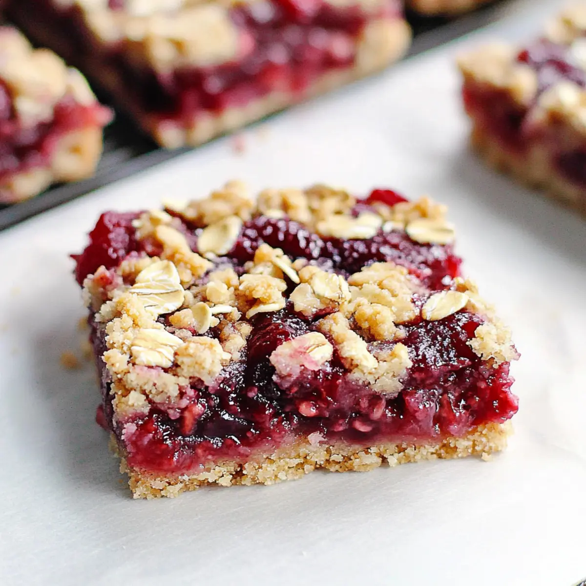 The moment I took a bite of these Raspberry Oatmeal Crumble Bars, it felt as if summer had surged into my kitchen, wrapping me in a warm embrace of sweet nostalgia. This delightful treat seamlessly combines a buttery, oatmeal-infused crust with a tangy raspberry filling, topped off with a crunchy crumbly layer that adds the perfect texture. What’s not to love? Not only are these bars incredibly easy to make, but they also serve as a fantastic dessert or snack for any gathering—making them a crowd-pleaser everyone will adore. Plus, with options to make them gluten-free or experiment with various fruits, the versatility of these Raspberry Oatmeal Crumble Bars means you can enjoy them just the way you like! Ready to discover how to whip up this irresistible delight? Let’s dive in!