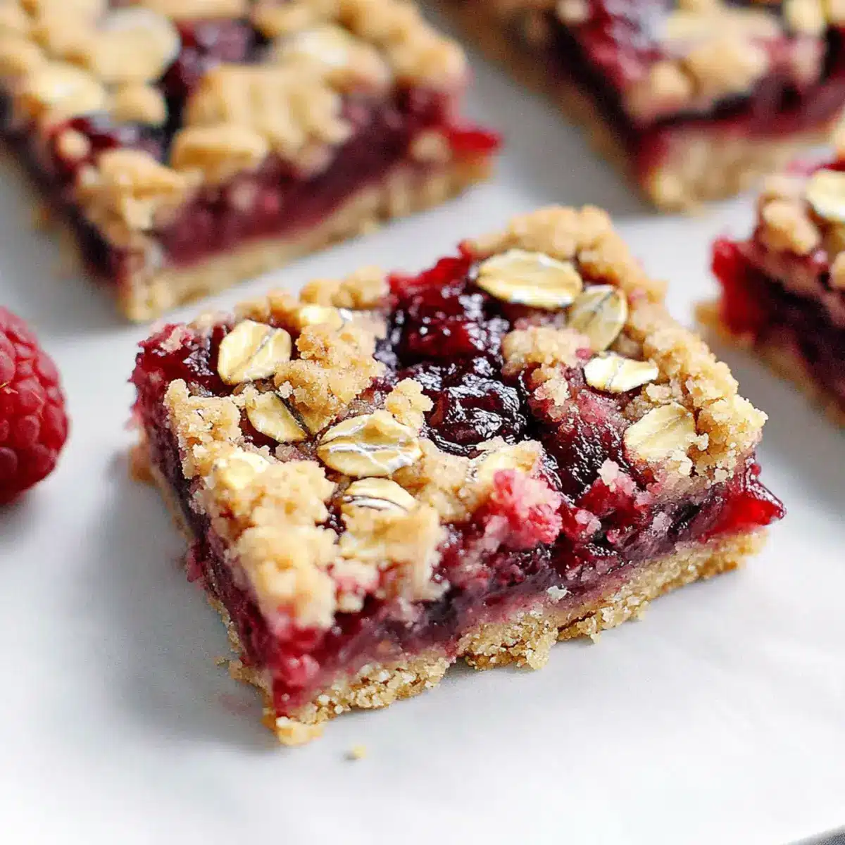 As I stood in my kitchen, the aroma of melted butter mingled with the sweet scent of raspberries, transporting me to a sun-drenched summer day. These Raspberry Oatmeal Crumble Bars have quickly become a beloved staple in my home, blending a buttery, crunchy oatmeal base with a luscious fruity filling that is simply irresistible. What I adore about this recipe is not only its ease—perfect for busy weeknights—but also its versatility, allowing you to swap out raspberry preserves for your favorite fruit flavors like apricot or blueberry. Whether you’re hosting a gathering or just craving a treat, these bars are sure to wow family and friends while satisfying that homemade dessert itch. Ready to bake something delicious? Let’s dive into this scrumptious recipe!