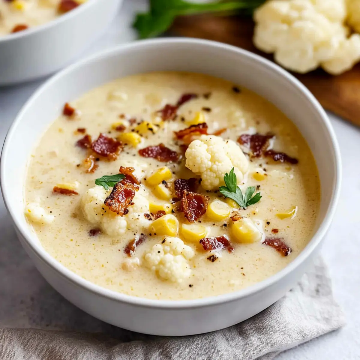 Flavor Explosion: The combination of sweet corn and smoky bacon elevates the flavor, while roasted cauliflower adds a comforting creaminess without the carbs.
