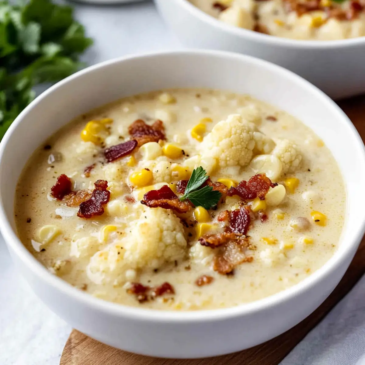 While flipping through old family cookbooks, I stumbled upon a cozy soup recipe that instantly transported me back to chilly evenings gathered around the table. That nostalgic dish got a modern twist, transforming it into my Lightened-Up Roasted Cauliflower Corn Chowder. This creamy delight combines the sweetness of corn and smoky bacon with the richness of roasted cauliflower, creating a comforting yet guilt-free meal. Not only is it gluten-free, but it also packs a punch of flavor with just ten ingredients and a quick 30-minute prep time—perfect for busy weeknights or a satisfying lunch. Whether you’re feeding the family or looking for a heartwarming solo meal, this chowder will surely become a new favorite in your kitchen. Are you ready to serve up a bowl of cozy comfort?