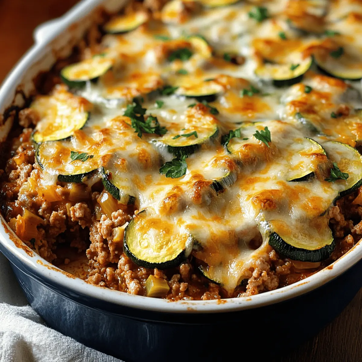 Place the baking dish in your preheated oven and bake uncovered for about 20 to 25 minutes. You’ll want to watch for the cheese to become melty and golden brown. The flavors will intensify as this Savory Ground Turkey Zucchini Casserole cooks, filling your home with an irresistible aroma.