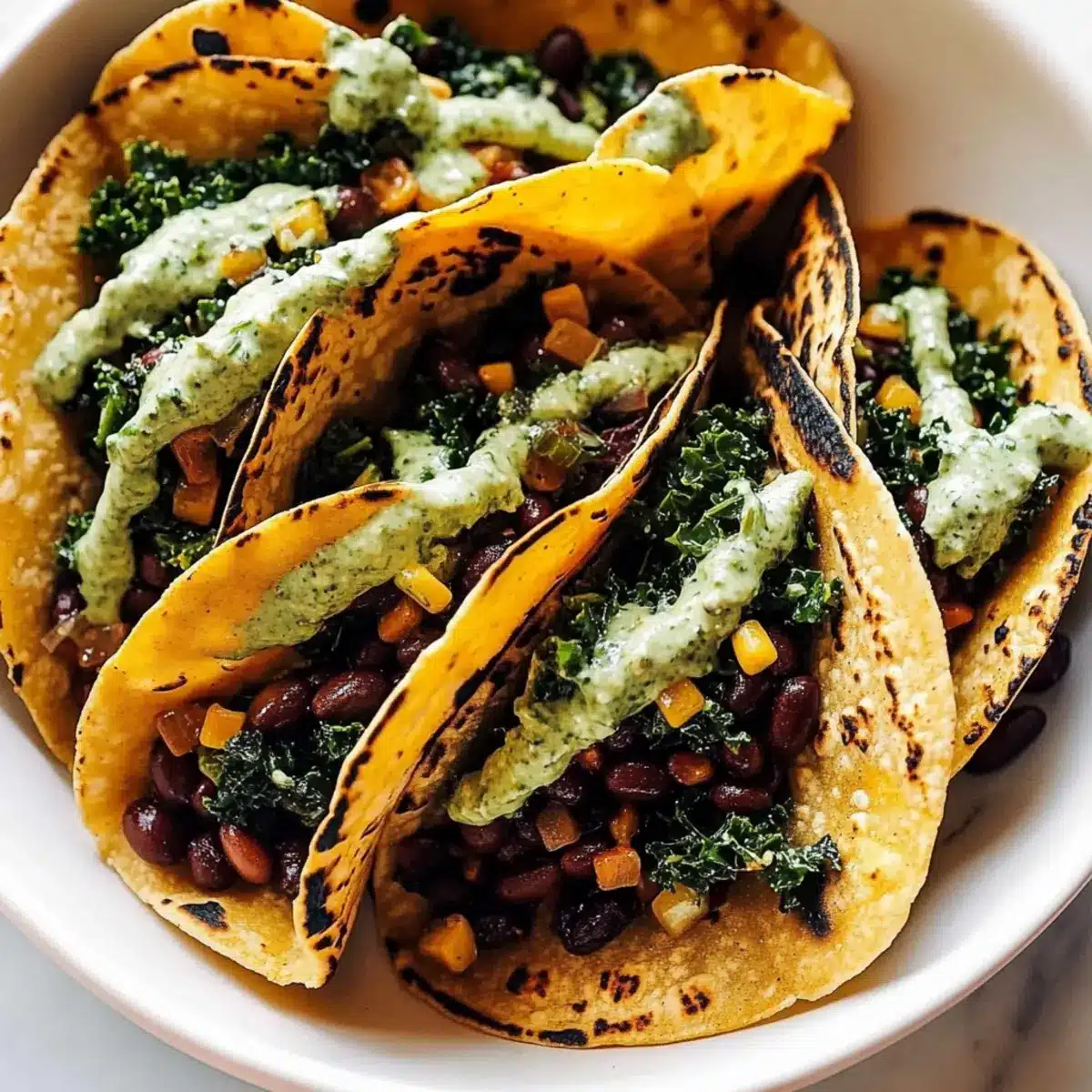 In a large skillet, heat 2 tablespoons of olive oil over medium heat. Add 2 minced garlic cloves and 1 tablespoon of chili powder, sautéing until fragrant, about 1 minute. Next, toss in 1 can of drained black beans and 3 cups of chopped kale. Stir well and cook for 5–7 minutes, until the kale is wilted and the beans are heated through, creating a smoky and flavorful filling for your tacos.