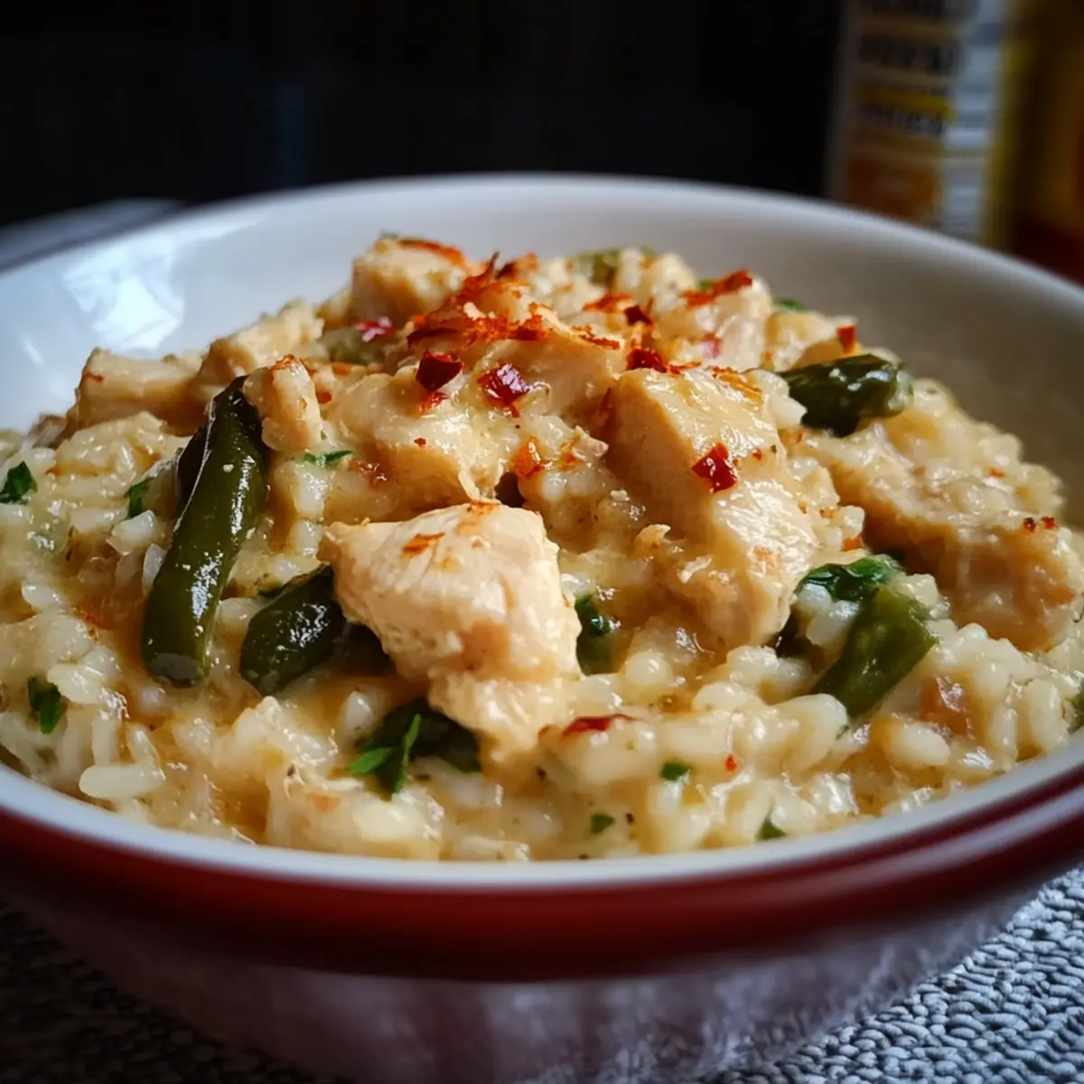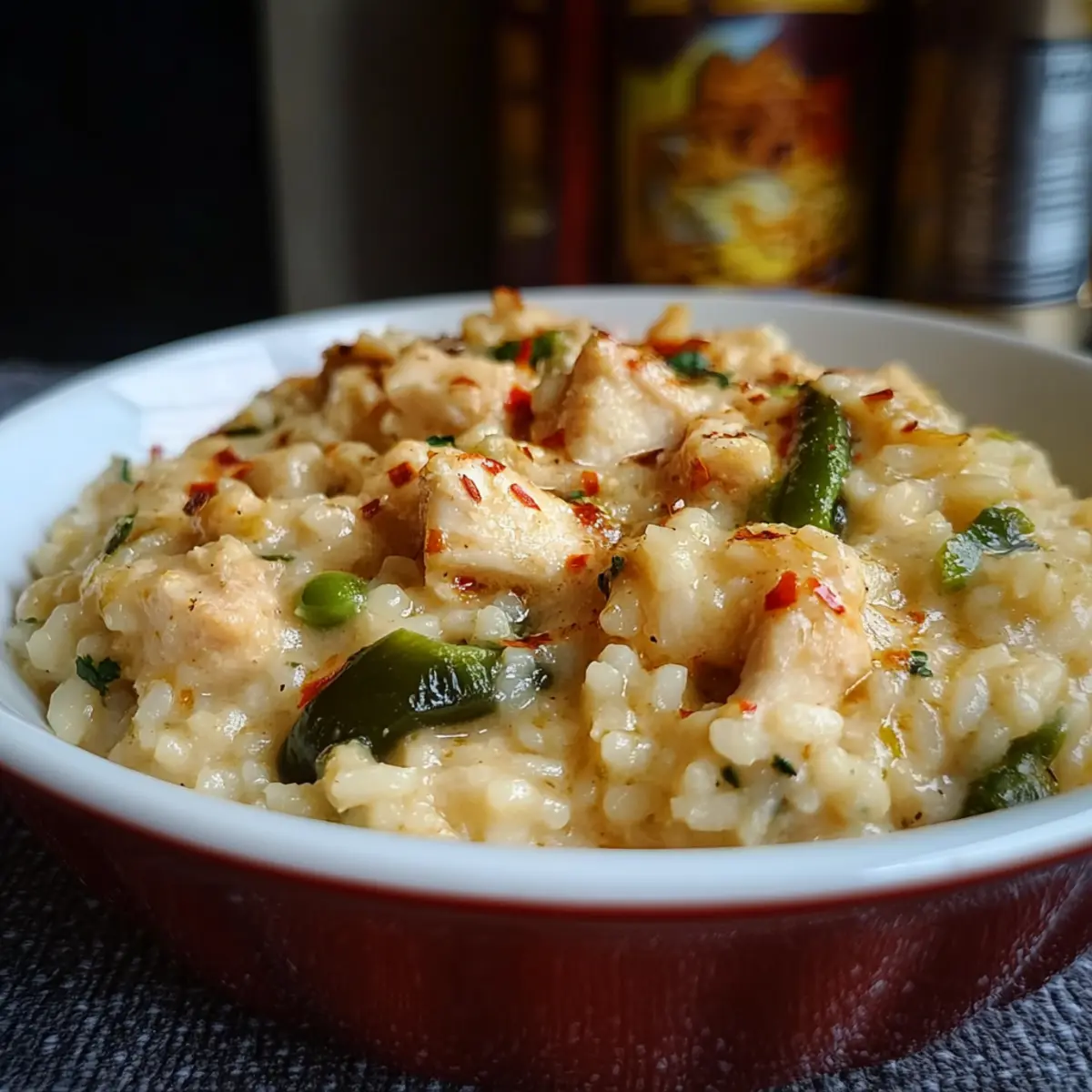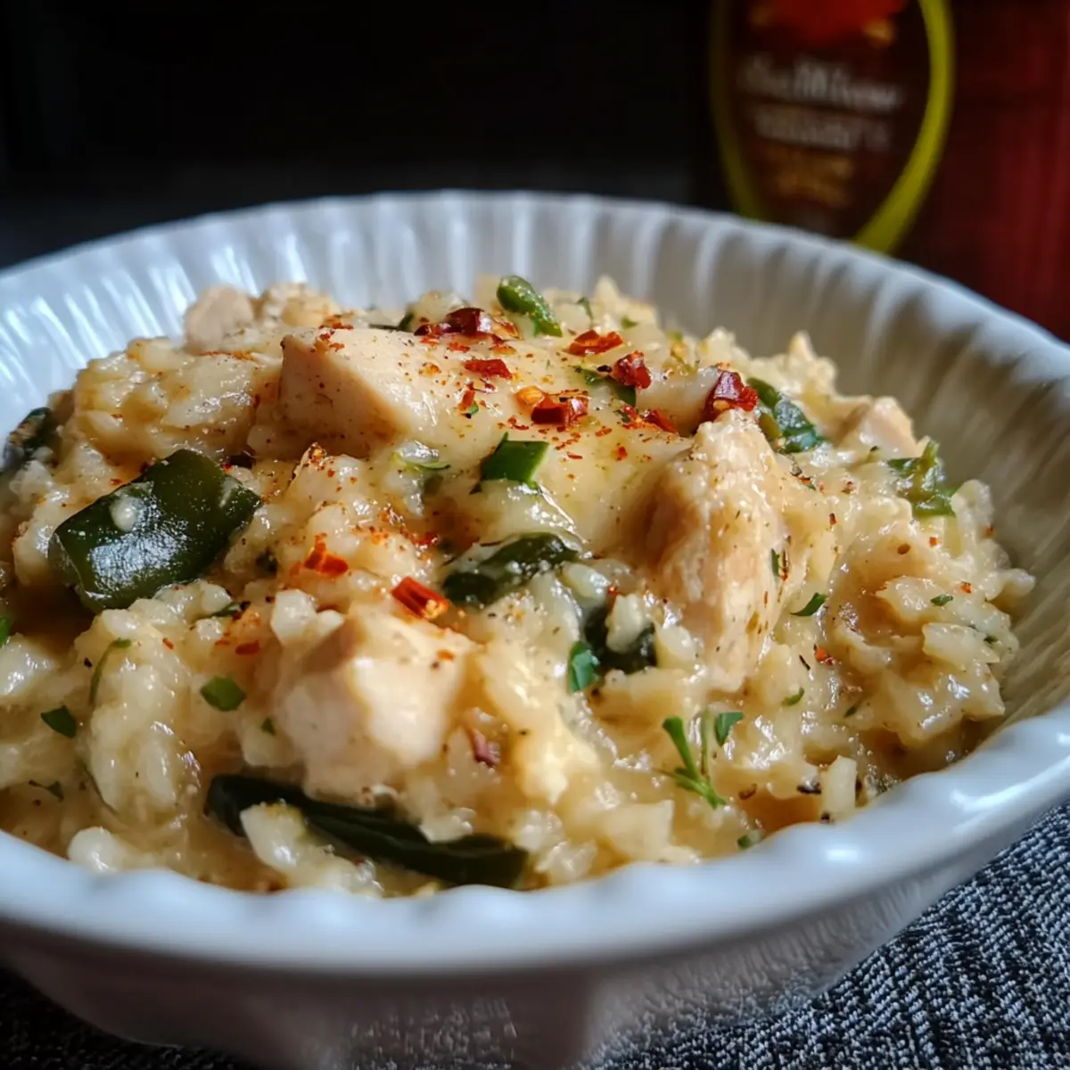 This Spicy Chicken Poblano Risotto is a creamy, comforting dish with a spicy twist perfect for cozy nights.