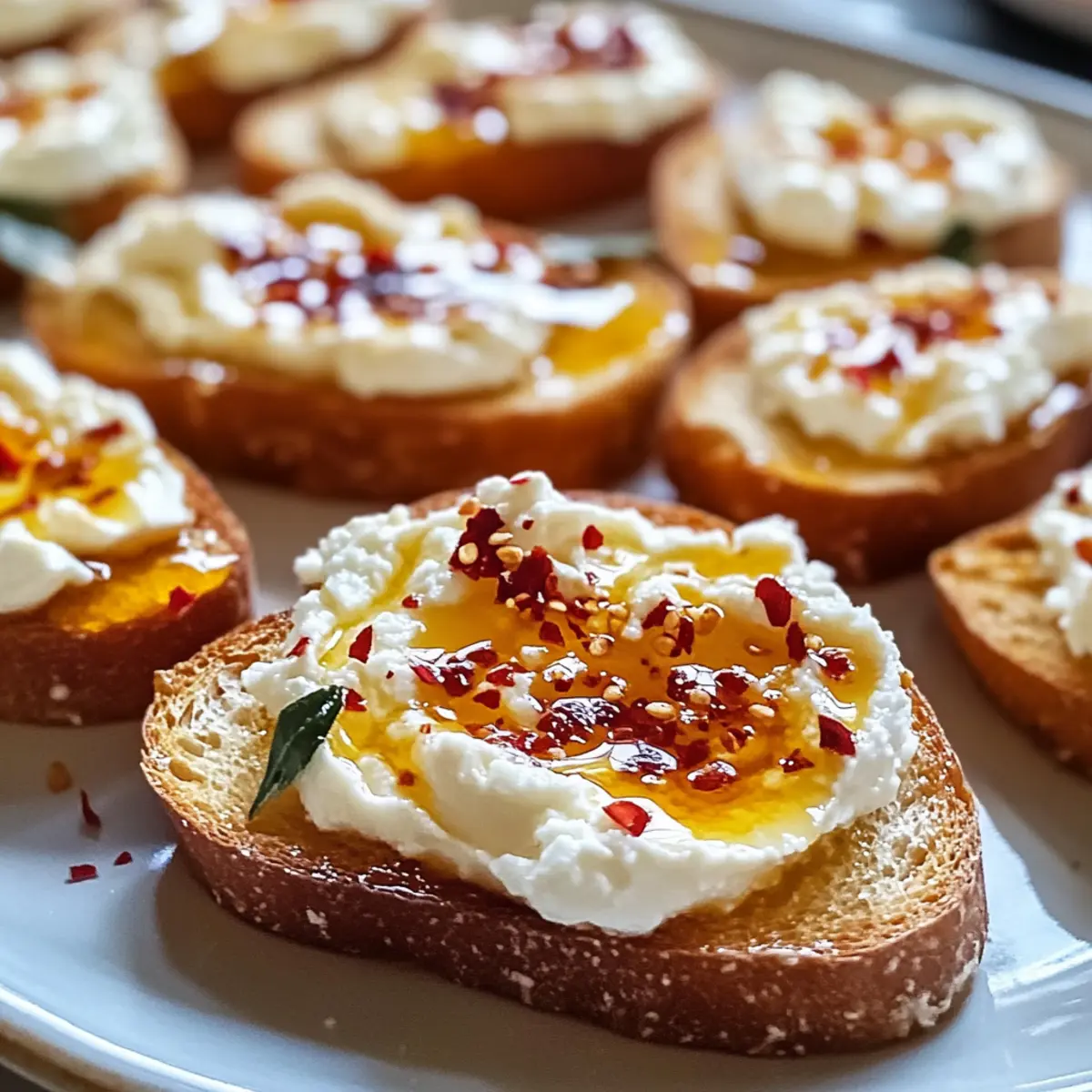 - Drizzle each topped crostini with hot honey to enhance flavors before serving.