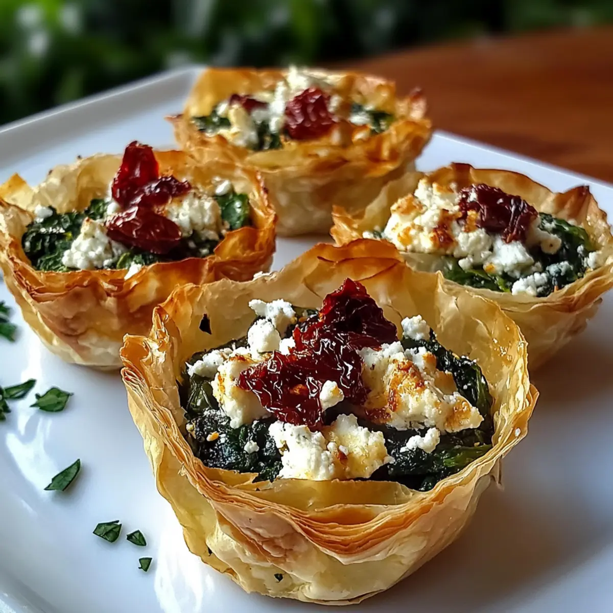 As the aroma of garlic sizzling in olive oil wafted through my kitchen, I couldn’t help but feel a wave of anticipation for the delightful creation ahead: Stuffed Phyllo Cups with Spinach, Feta & Sundried Tomatoes. These crispy little wonders are a showstopper for any gathering, combining flaky, buttery phyllo with a creamy, savory filling that speaks to my love for homemade comfort. Not only are they quick and easy to whip up, but they also add a touch of elegance to any table setting. Whether you’re hosting friends or simply enjoying a cozy night in, these bite-sized treats are sure to impress. Ready to learn how to make this mouthwatering appetizer that brings joy with every crunchy bite? Let’s dive in!